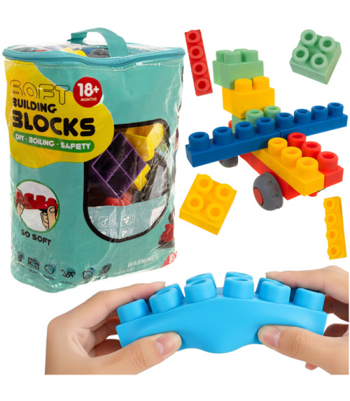 Guminės sensorinės kaladėlės vaikams ISO TRADE, minkštos ir kūrybiškos, 80 kaladėlių rinkinyje