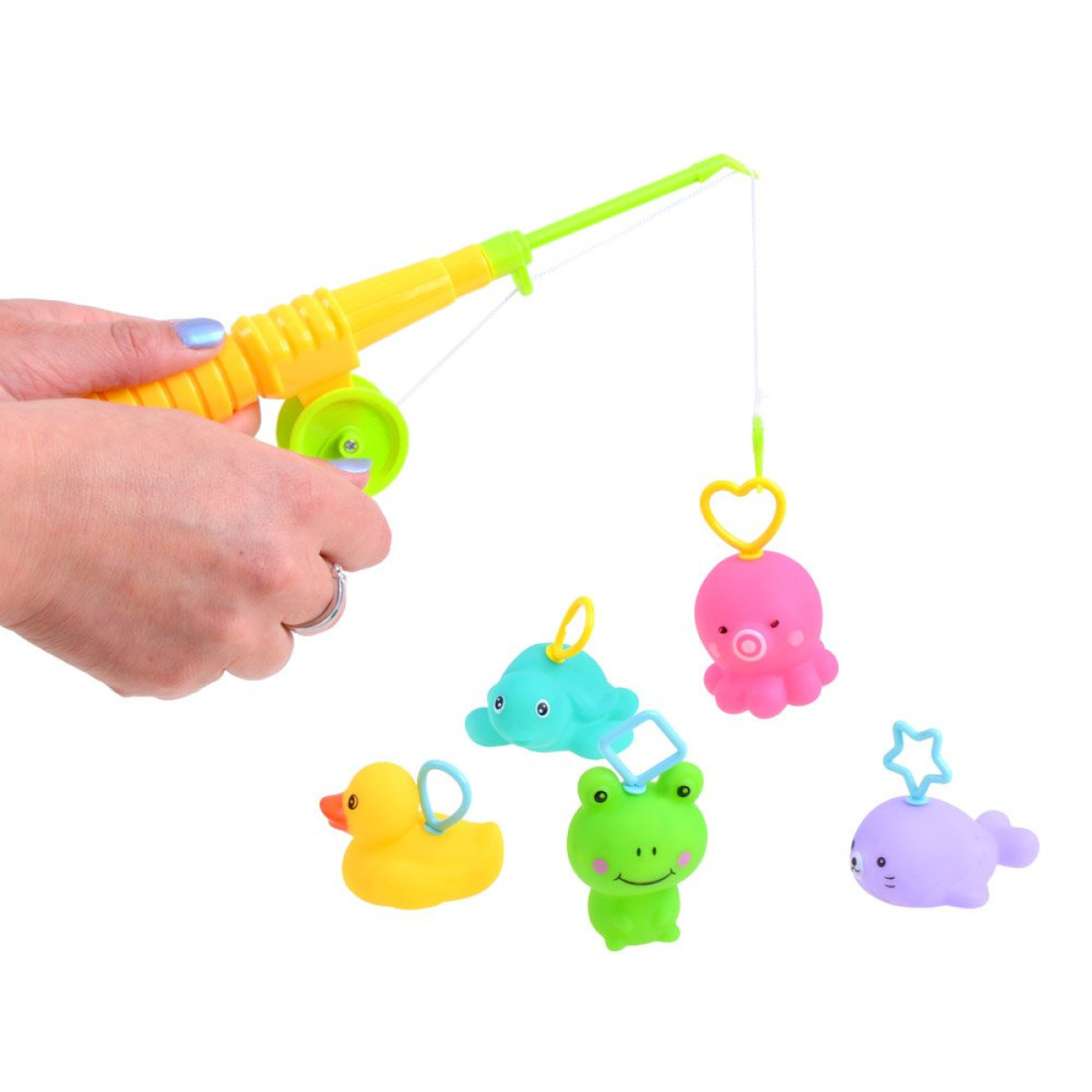 Rinkinys su 5 guminiais gyvūnėliais ir meškere, skirtas žaidimui vandenyje, taps nepakeičiamu kompanionu kiekvienų maudynių metu. Vaikai mėgsta taškytis vandenyje, o kai turi su kuo žaisti, jie tiesiog nenori išeiti iš vandens.
