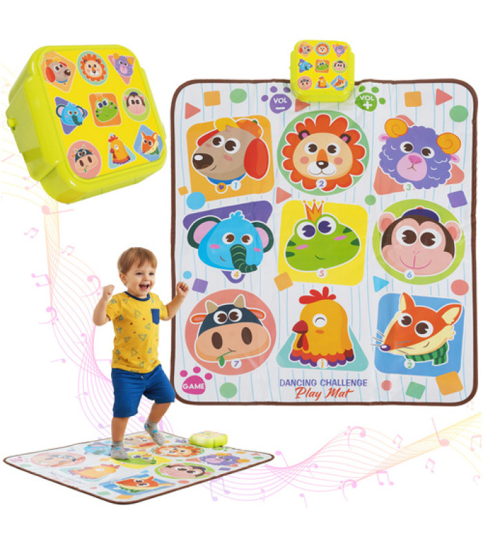 Šis spalvingas kilimėlis su gyvūnų motyvais leidžia vaikams kurti savo melodijas spaudžiant paveikslėlių laukus. Komponuok ir šok savo kūrinius - tai puiki galimybė lavinti kūrybiškumą ir muzikalumą. Kilimėlis turi 4 žaidimo režimus ir sunkumo lygio reguliavimą, kurie suteikia dinamišką ir įtraukiantį žaidimą. Tai puiki dovana - naujas, originaliai supakuotas kilimėlis tikrai nudžiugins kiekvieną vaiką. Atitinka Europos normas - šokių žaidimas patikrintas pagal Europos normas, todėl galite būti tikri, kad jis yra saugus!