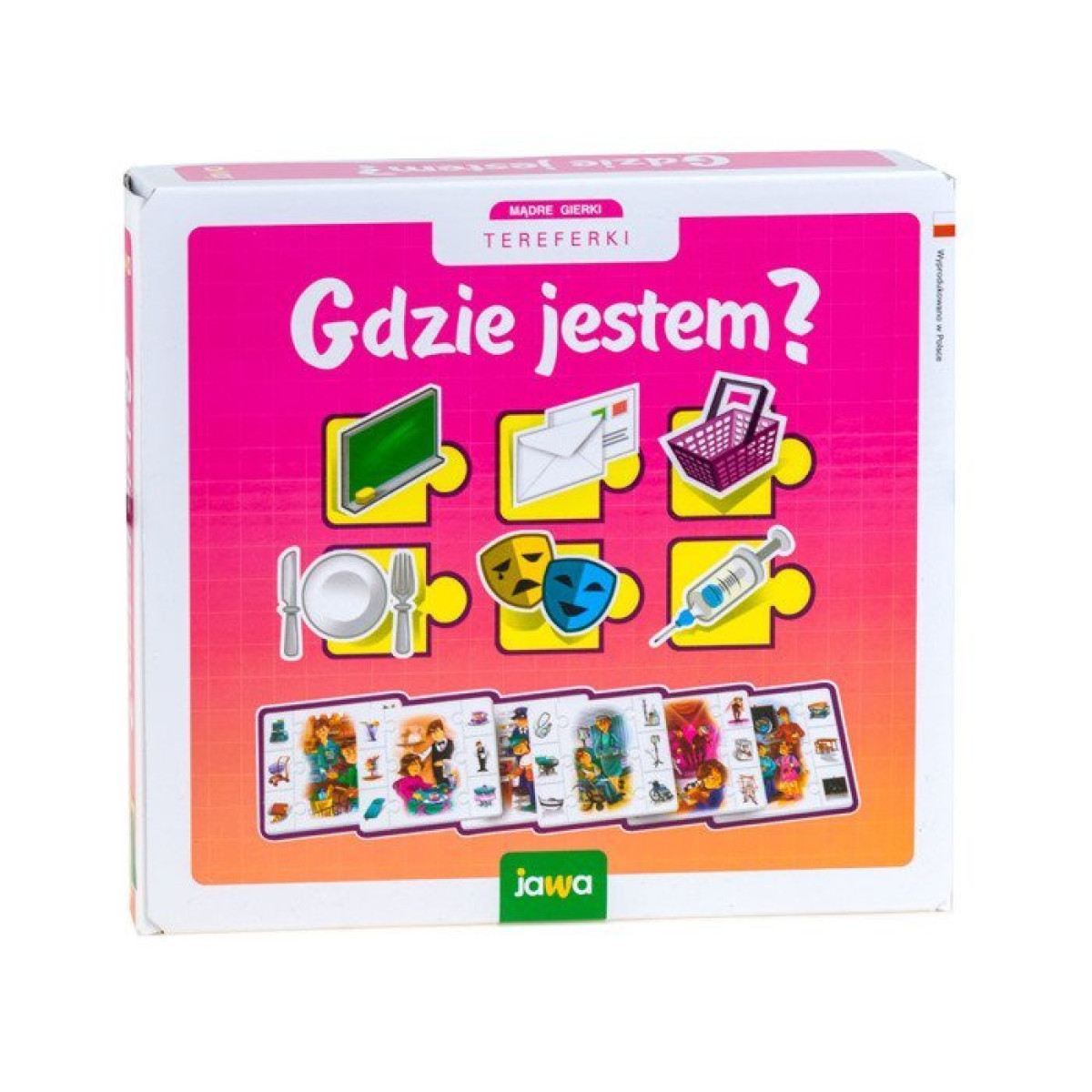 Jawa Dėlionė "Kur aš esu?" iš serijos Protingi Žaidimai yra edukacinis žaidimas, kuris įdomiai supažindina vaikus su įvairiomis viešosiomis vietomis, lavindamas jų vaizduotę, pastabumą ir gebėjimą susieti daiktus su konkrečiomis vietomis. Tai puikus užsiėmimas vaikams ikimokykliniame amžiuje, kuris ne tik linksmina, bet ir ugdo svarbius pažintinius bei socialinius įgūdžius.
