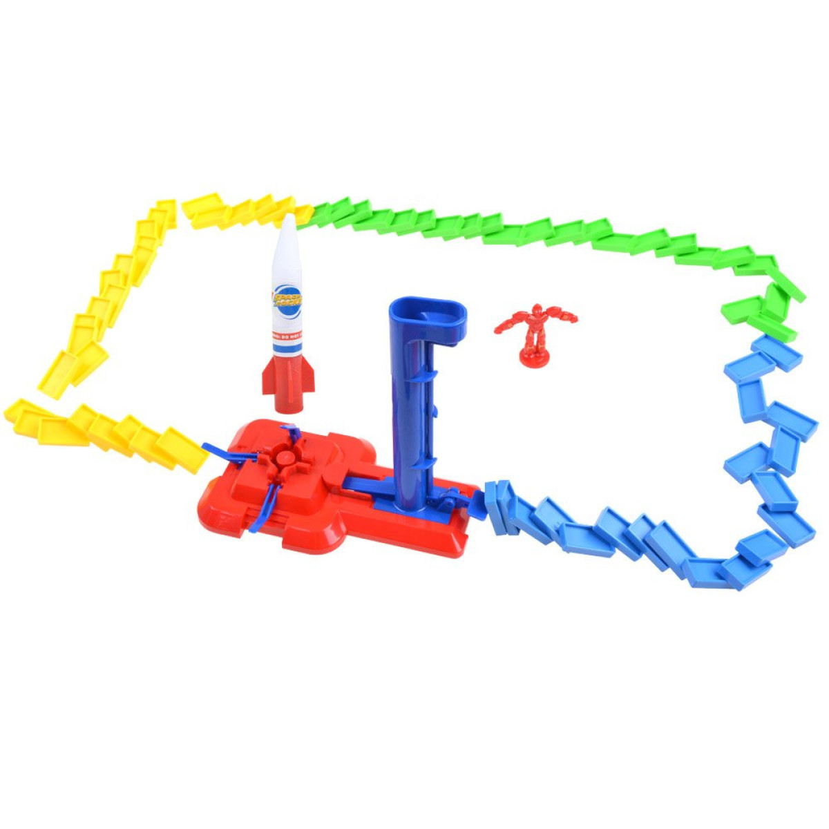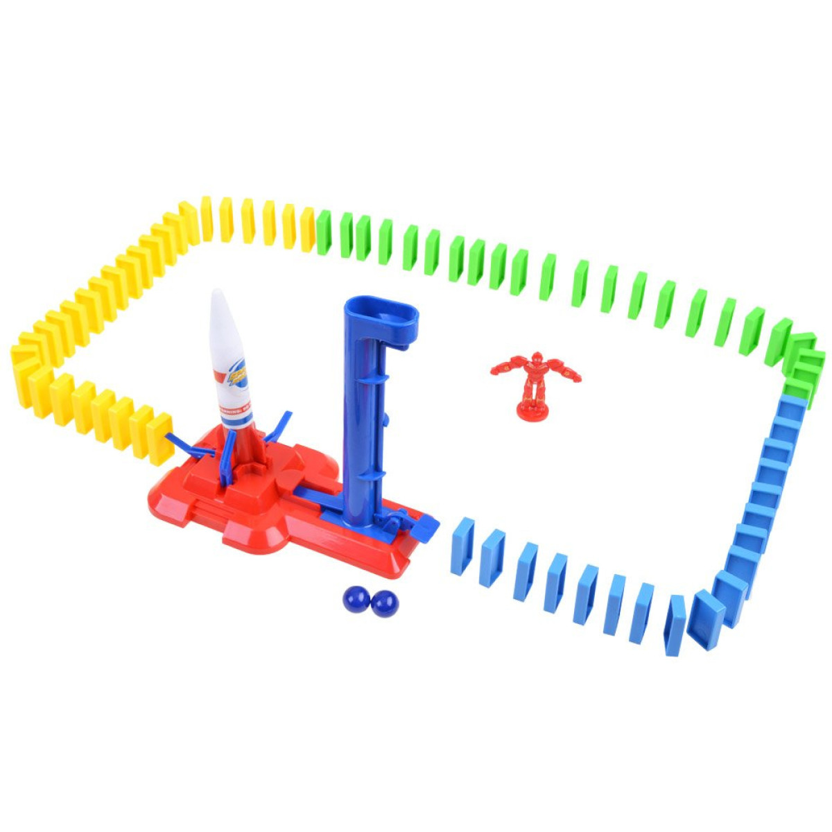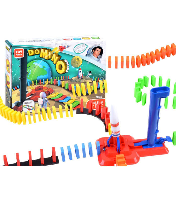 Domino – tai spalvingas plastiko plytelių rinkinys, skirtas kūrybiškam išdėstymui. Rinkinys papildytas lipdukais su raidėmis (alfabetu), skaičiais ir matematiniais ženklais. Domino su raketa leidžia smagiai pramogauti. Skirtas vaikams, norintiems žaisti kosminę stotį, statyti raketų paleidimo aikšteles ir išdėstyti aplink domino kaladėles. Įmetus rutuliuką į kaminą - raketa kyla aukštyn, o išdėstyti domino raštai paeiliui griūva.