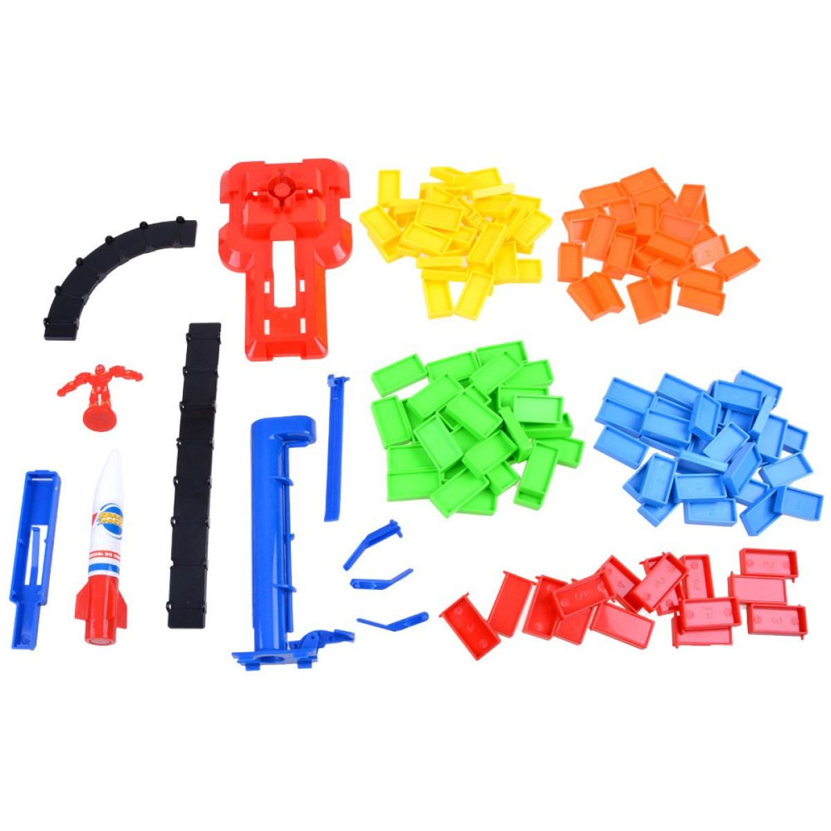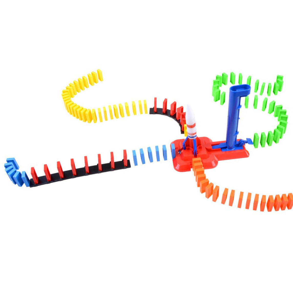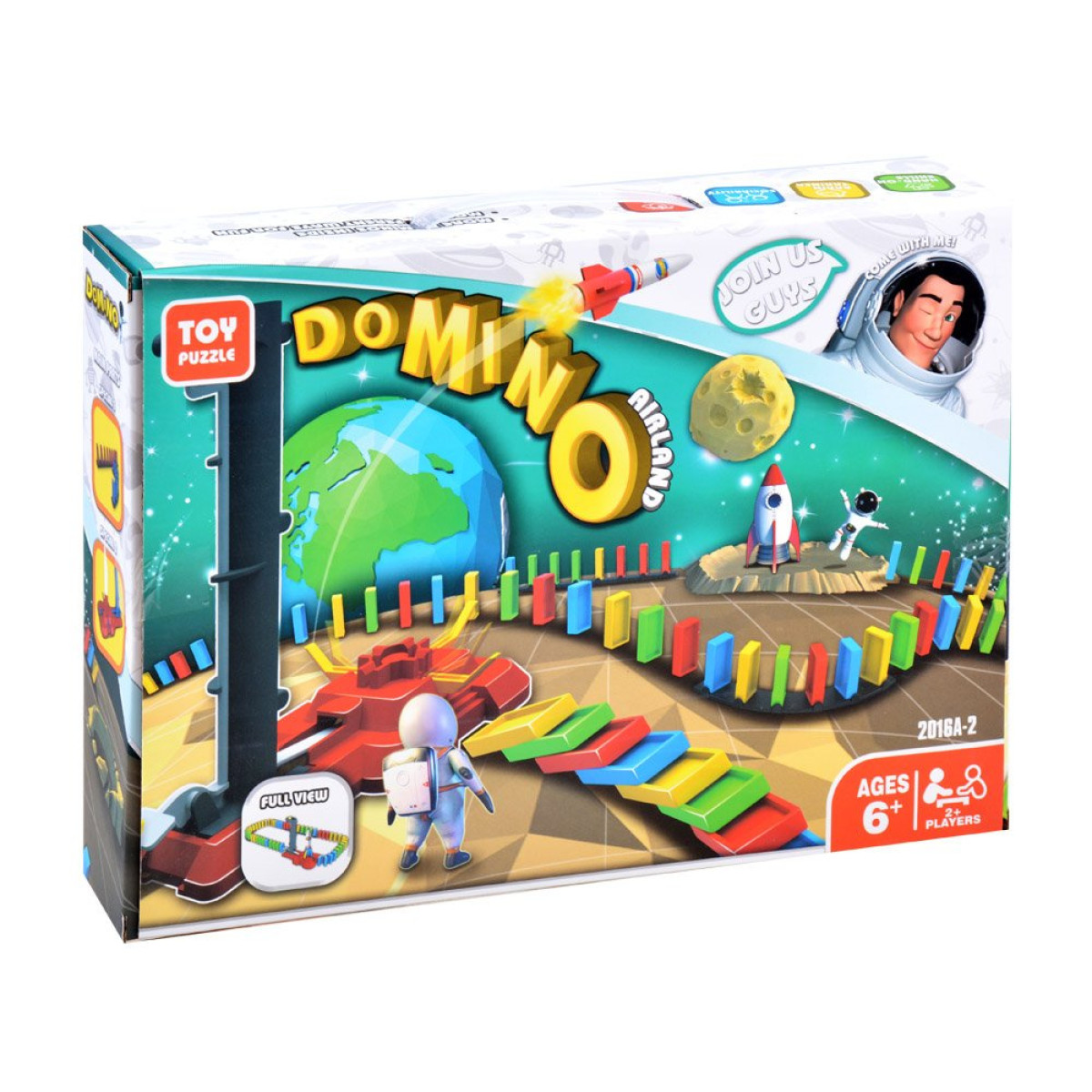 Domino – tai spalvingas plastiko plytelių rinkinys, skirtas kūrybiškam išdėstymui. Rinkinys papildytas lipdukais su raidėmis (alfabetu), skaičiais ir matematiniais ženklais. Domino su raketa leidžia smagiai pramogauti. Skirtas vaikams, norintiems žaisti kosminę stotį, statyti raketų paleidimo aikšteles ir išdėstyti aplink domino kaladėles. Įmetus rutuliuką į kaminą - raketa kyla aukštyn, o išdėstyti domino raštai paeiliui griūva.