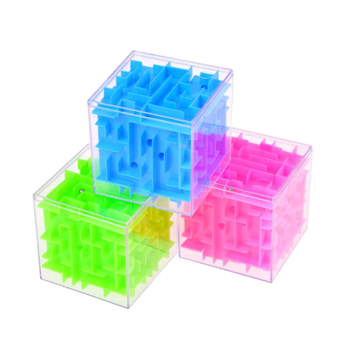 Žaislas kubas labirintas - puiki pramoga nuobodulio akimirkoms. Viduje rasite daugybę vingiuotų labirintų, per kuriuos reikia pravesi mažą metalinį rutuliuką, naudojant sumanius rankų judesius. Žaidimas niekada nesibaigia - rutuliukas, patekęs į vieną angą, iškris per kitą. Žaislas lavina koncentraciją, pastabumą ir loginį mąstymą, tad reikės tikros sumanumo ir nemažai kantrybės žaidžiant. Žaislo korpusas skaidrus, pagamintas iš atsparaus plastiko. Galite juo žaisti keliaujant į mokyklą, laukiant eilėje ar tiesiog siekiant rezultato. Tai puikus žaislas ir vaikams, ir suaugusiems.