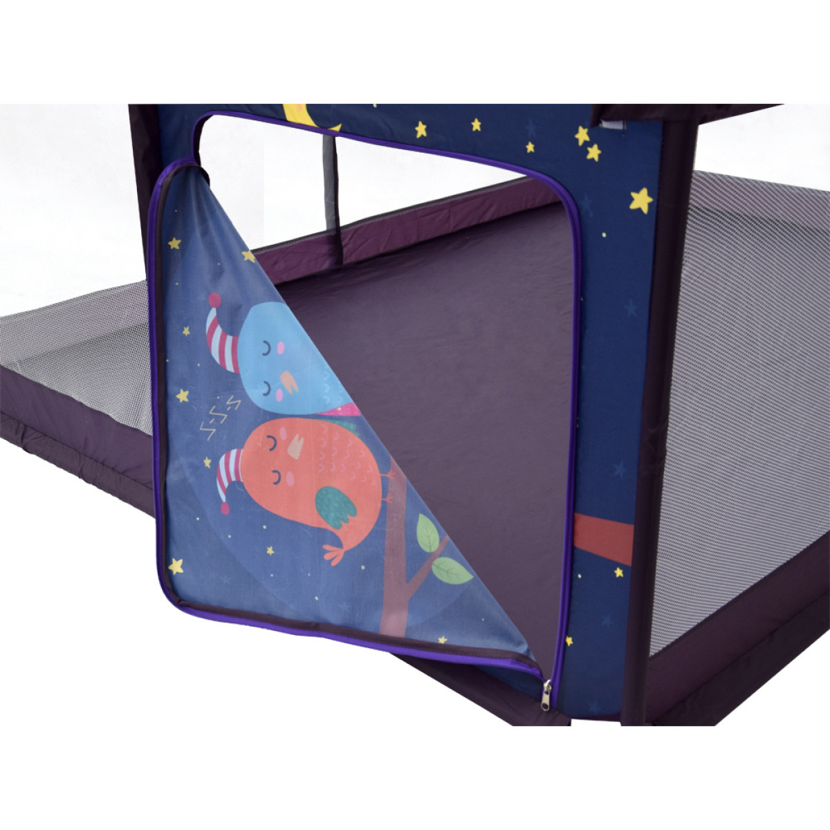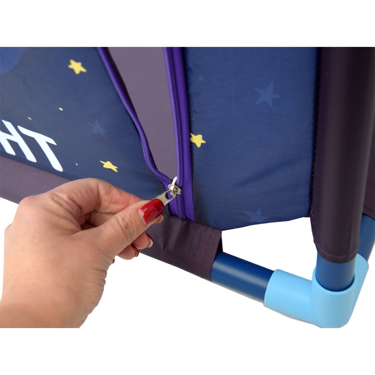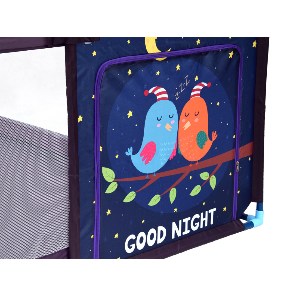 - Lengvas montavimas ir išardymas: Maniežas gali būti greitai surinktas ir išardytas, o komplekte esantis krepšys su rankenomis palengvina laikymą ir transportavimą.