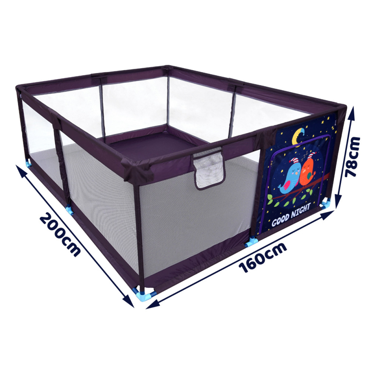 - Didelis dydis: Maniežo matmenys 160 cm x 200 cm x 78 cm suteikia erdvią žaidimų zoną, puikiai tinkančią šliaužioti, žaisti ar pailsėti.