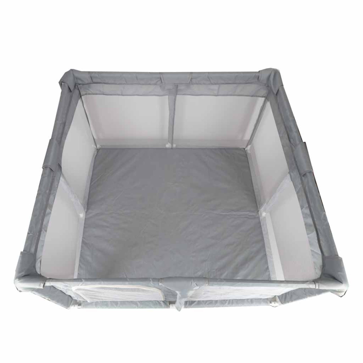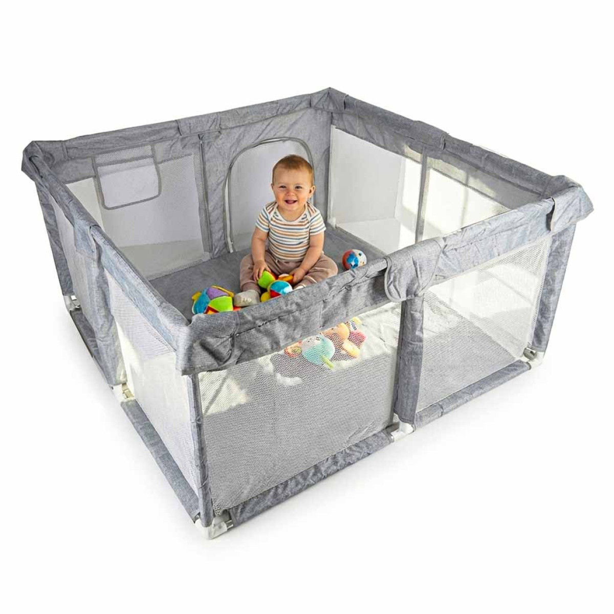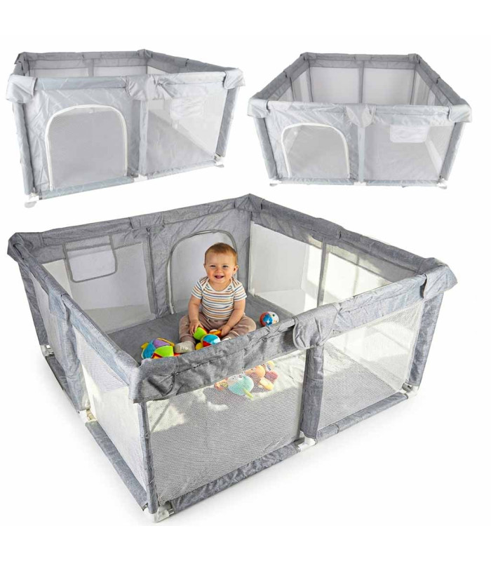 Maniežo šoninės sienelės su tinklelio elementais leidžia matyti vaiką manieže, todėl galite jį stebėti visą laiką. Jungtys su siurbtukais užtikrina, kad maniežas būtų stabilus ir neslystų naudojimo metu.