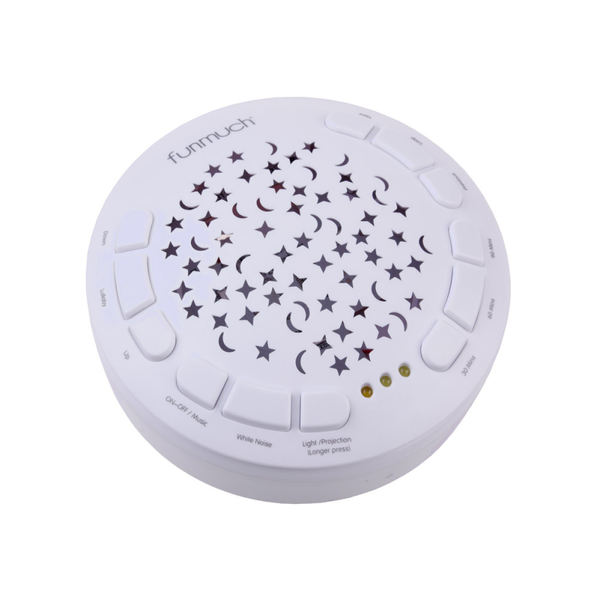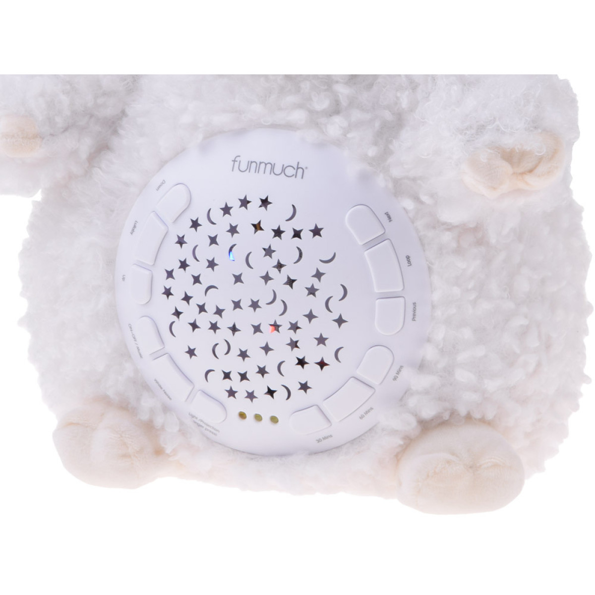 - ON/OFF – įjungimas ir išjungimas, su 10 fortepijono lopšinių ir švelniomis šviesos spalvų pokyčiais