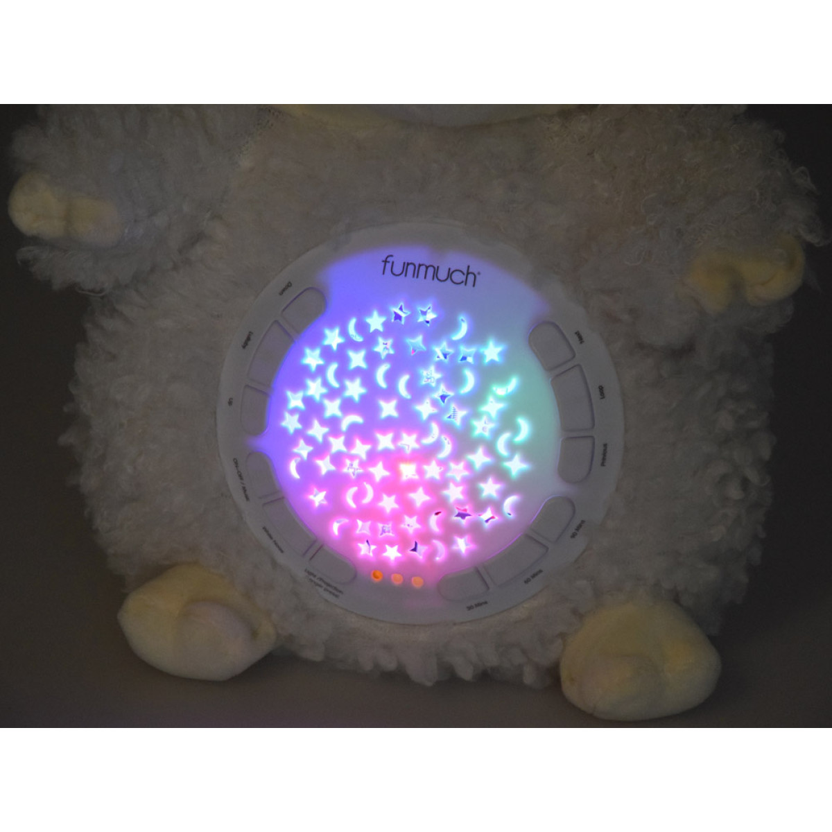 Grojant melodijoms ar garsams, projektorius rodo ant lubų ir sienų spalvotas žvaigždutes ir mėnulius raudonos, žalios ir mėlynos spalvų. Efektas ypač gražus tamsiame kambaryje, sukuriant draugišką ir ramią atmosferą, skatinančią užmigti.