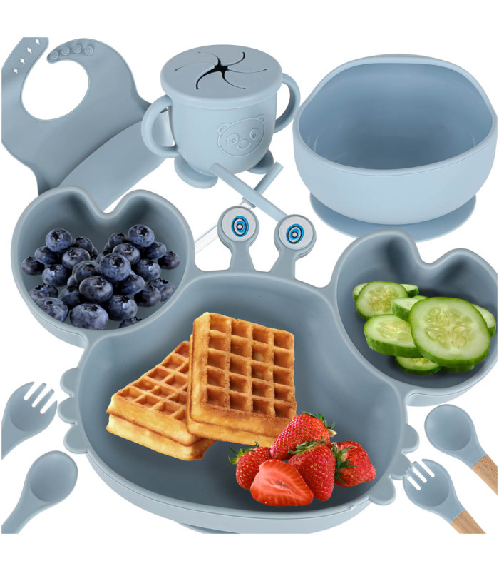 Silikoniniai indai vaikams Krabas, 9 dalių rinkinys, mėlynas