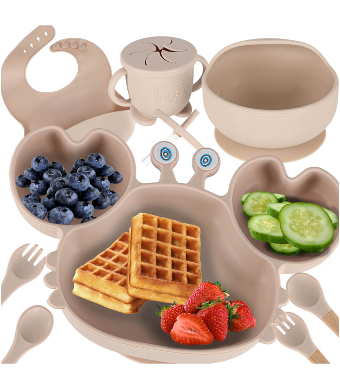 Silikoniniai indai vaikams - Krabų rinkinys, 9 dalių, smėlinis