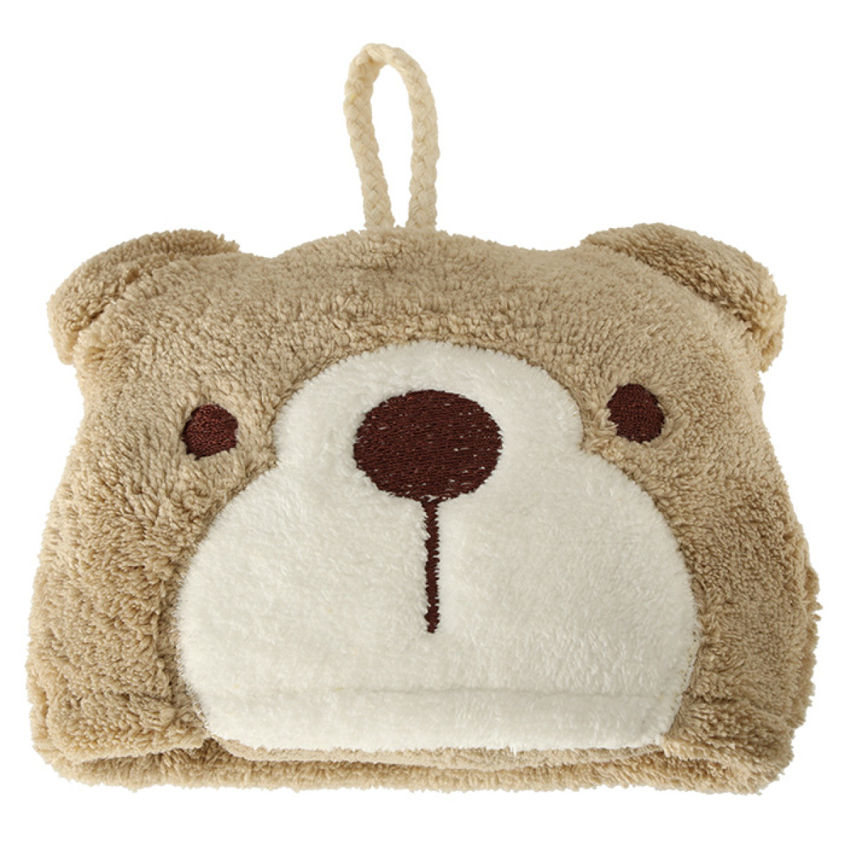 Rankšluostis turi praktišką kišenėlę meškiuko galvutės formos, kurioje galima laikyti rankšluostį kelionėje.