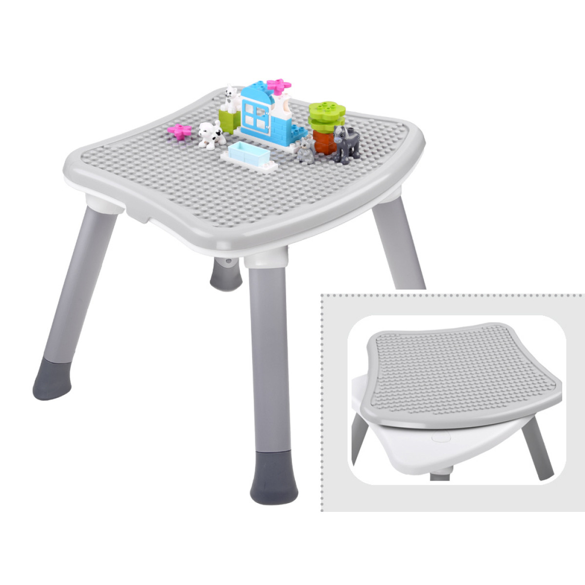 - Stalas su žaidimų paviršiumi – specialus priedas tinka, pavyzdžiui, Duplo tipo kaladėlėms, suteikdamas patogią ir stabilią vietą konstrukcijų kūrimui.