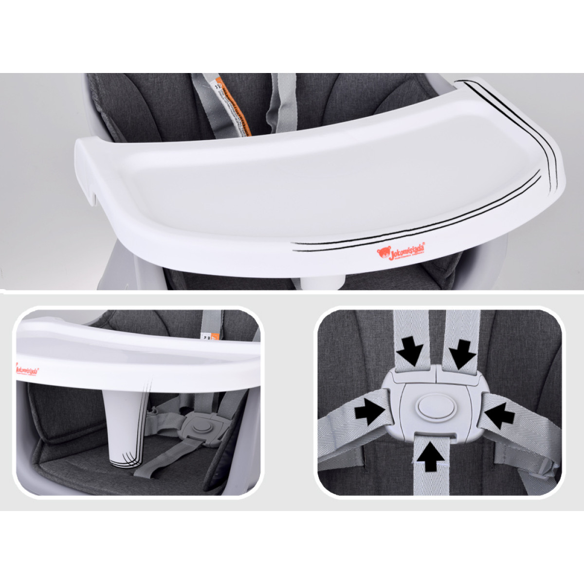 - Maitinimo kėdutė su padėklu – idealus savarankiškam valgymui ir kūdikio maitinimui. Padėklas formuotas, nuimamas ir lengvai valomas – užtenka nuplauti po tekančiu vandeniu arba įdėti į indaplovę.