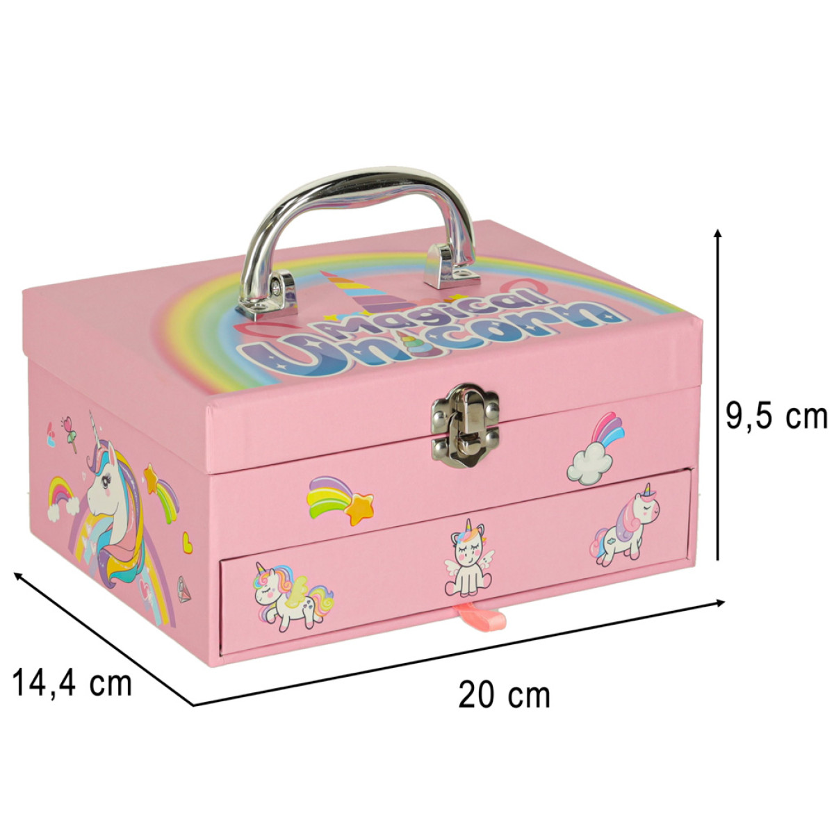 Kosmetikos rinkinys su vienaragiu yra pilnas makiažo ir nagų stilizavimo rinkinys, kuris tinka tiek kelionėms, tiek namų žaidimams su draugėmis. Tai pasiūlymas, kuris leidžia pasijausti ypatingai - kaip tikra žvaigždė.