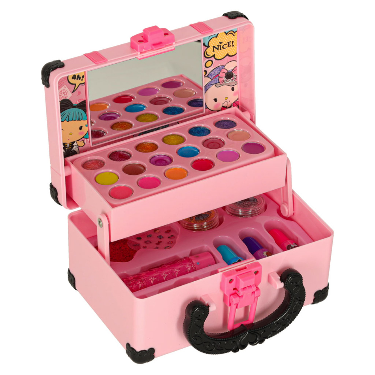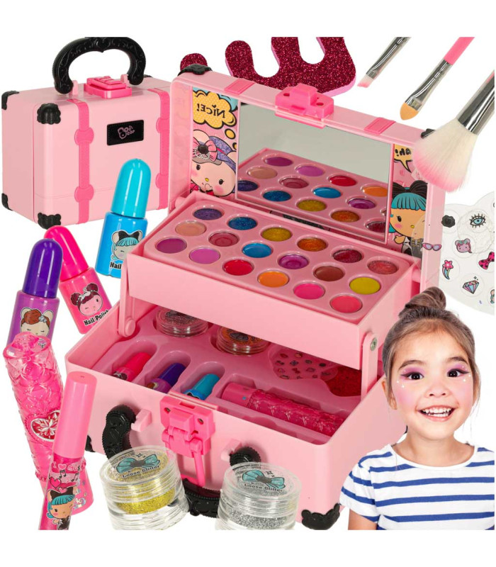 Šis elegantiškas kosmetikos rinkinys yra idealus pasirinkimas kiekvienai mergaitei, siekiančiai atrasti makiažo pasaulį. Lagaminas su kosmetika ne tik atrodo puikiai, bet ir suteikia viską, ko reikia smagiam ir saugiam eksperimentavimui su makiažu bei nagų priežiūra.