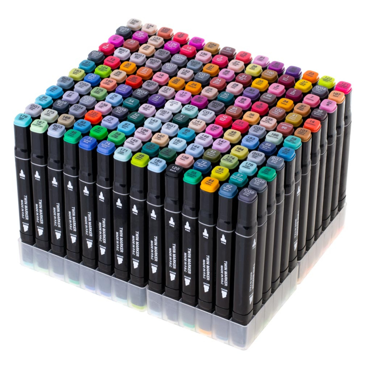 Dvipusiai markeriai - flomasteriai su dėklu ir plastikiniu organizatoriumi, 168vnt