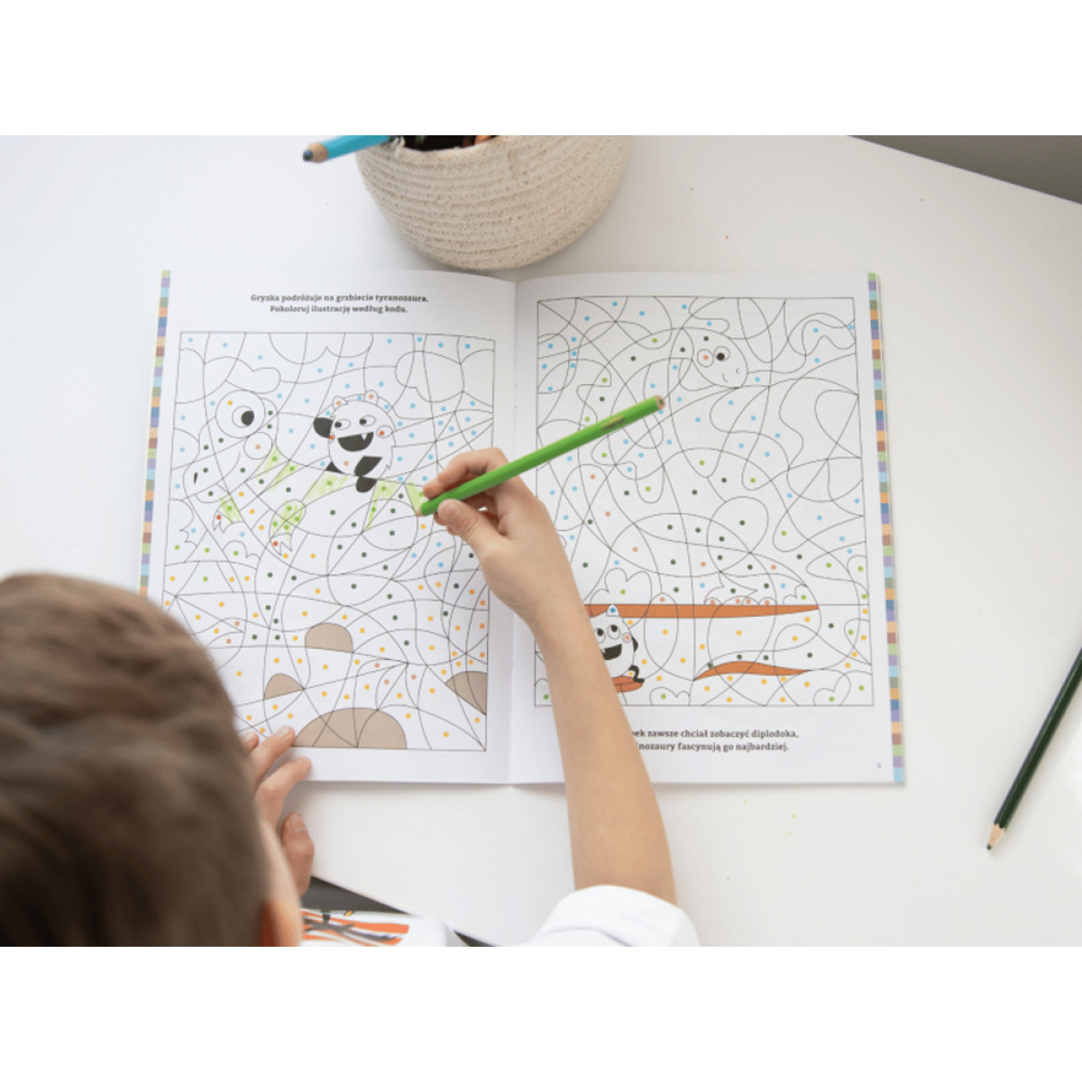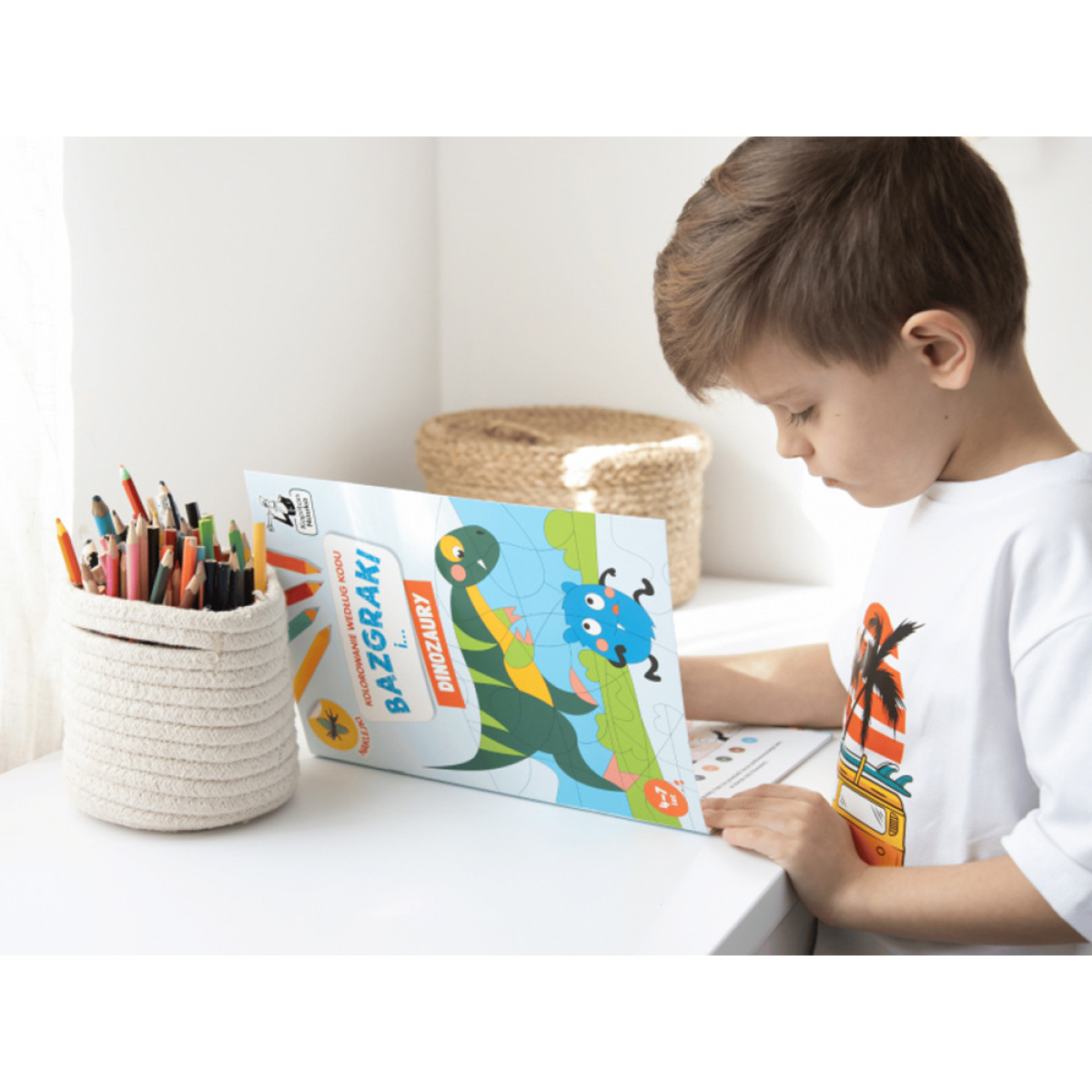Spalvinimo knygelė „Bazgraki dinozaurų pasaulyje“ yra mokymosi ir žaidimo derinys, kuris padeda lavinti kūrybiškumą, preciziškumą ir gebėjimą sutelkti dėmesį.