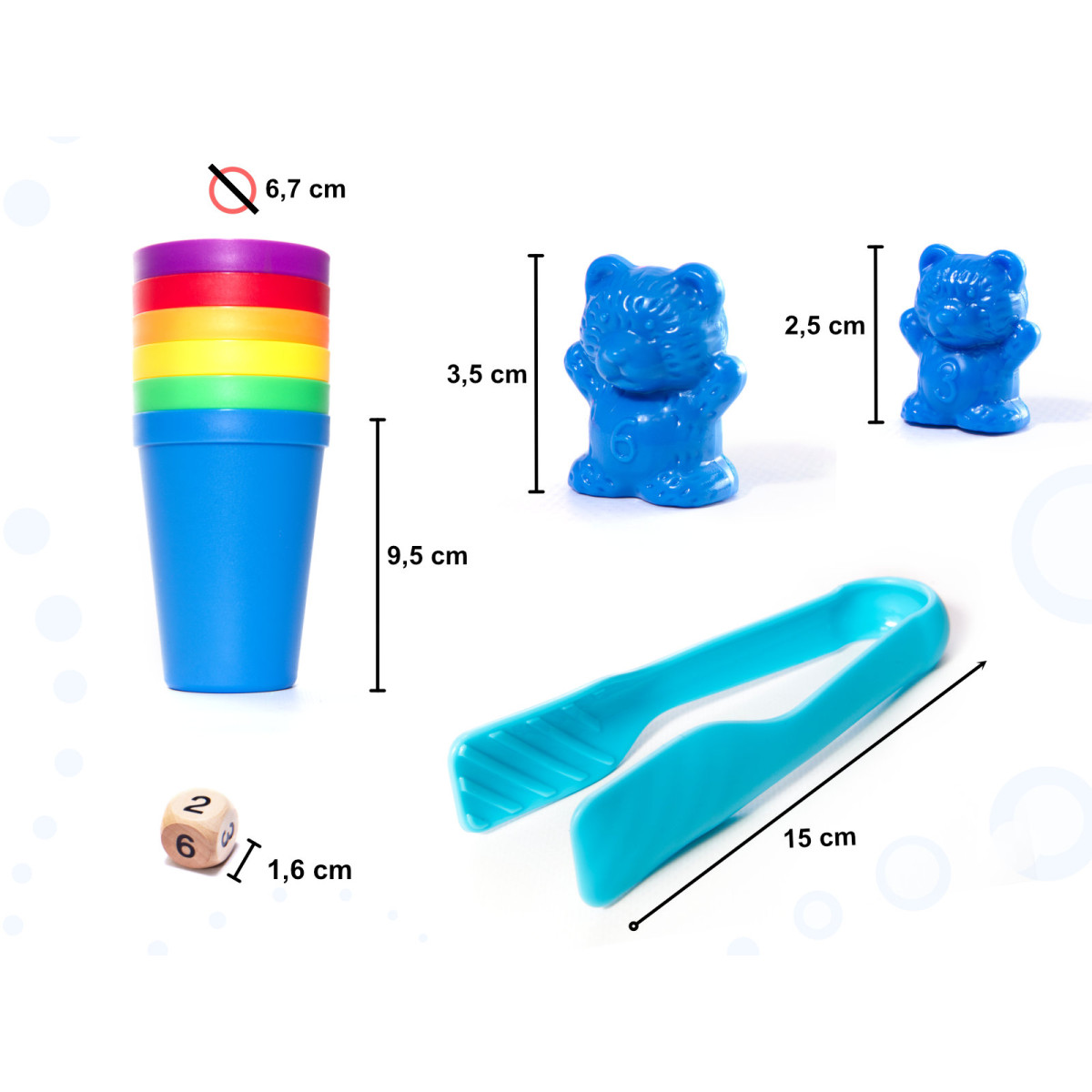 Mieli įvairiaspalviai mokomieji meškiukai pavergs kiekvieno mažylio širdį ir paskatins tyrinėti skaičių ir matematinių veiksmų pasaulį.