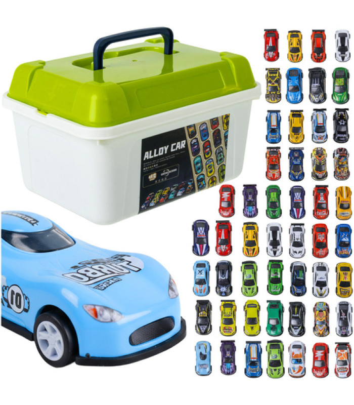 Automobilių žaislai su traukos mechanizmu, 50 vnt. lagamine