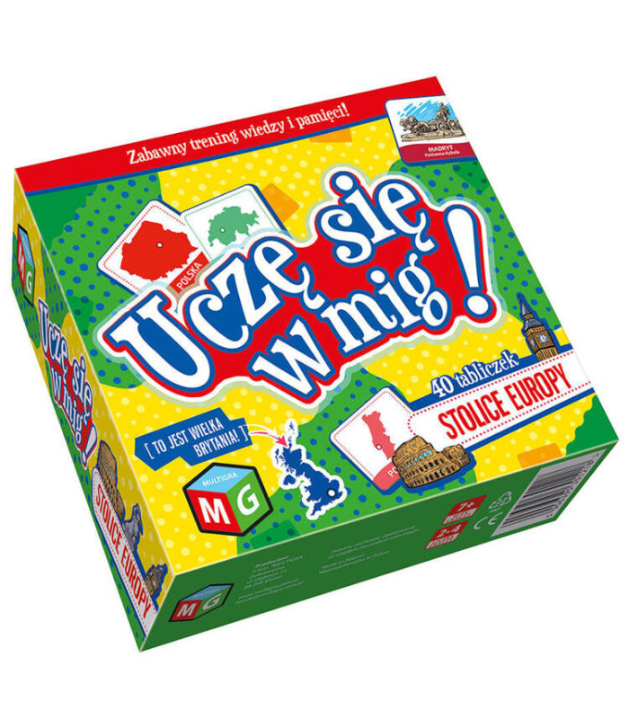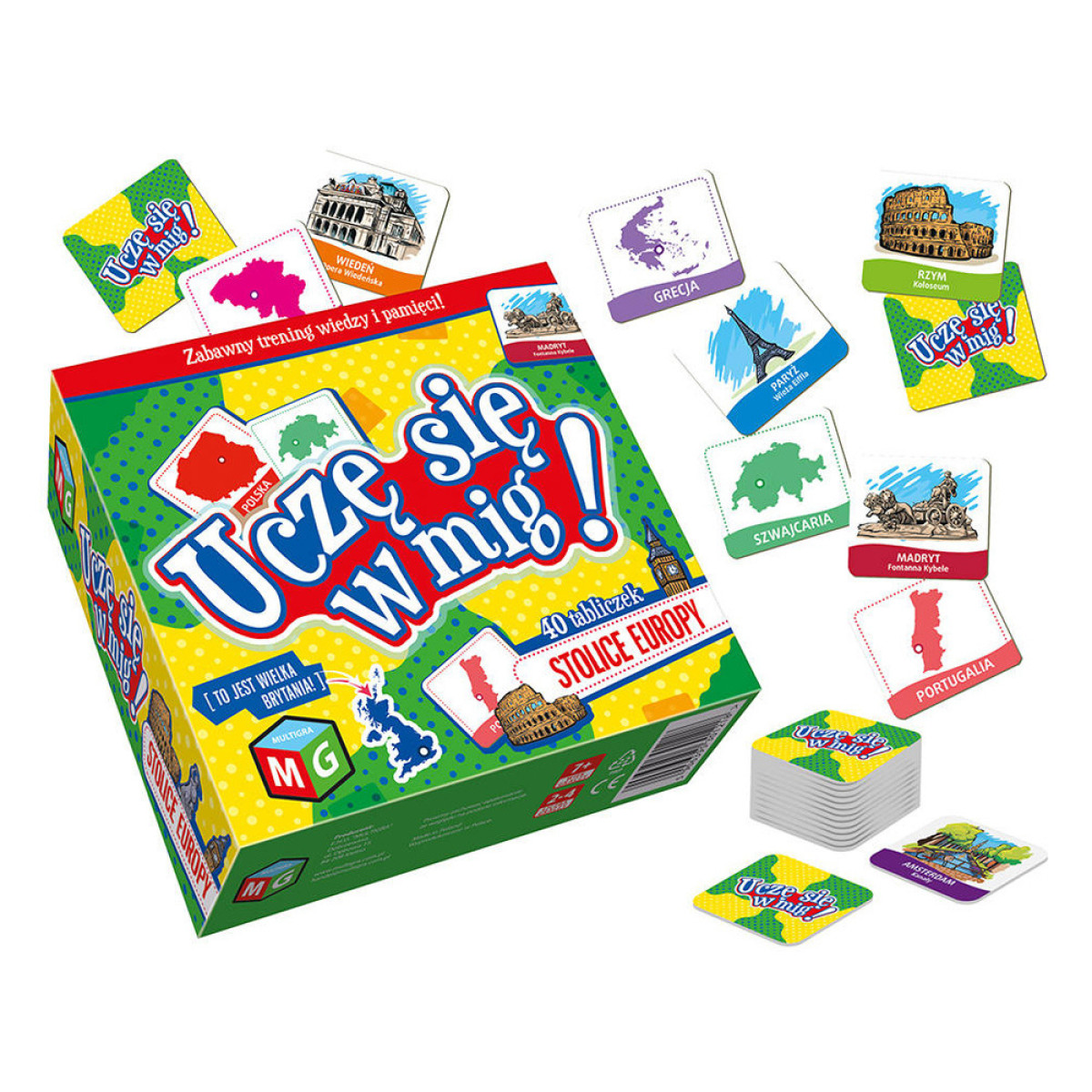 "Mokausi akimirksniu - Europos sostinės" yra puikus žaidimas, kuris padės jūsų vaikui lavinti atmintį ir pastabumą. Be to, jis praplės geografijos žinias ir paskatins atrasti tikro keliautojo dvasią, suteikdamas daug pramogų ir emocijų. Žaidime laimi tas, kuris geriausiai įsimena šalių ir jų sostinių porų išdėstymą, trumpam atveriant jas iš visų iliustruotų kortelių, gulinčių ant stalo atverčiant į viršų.