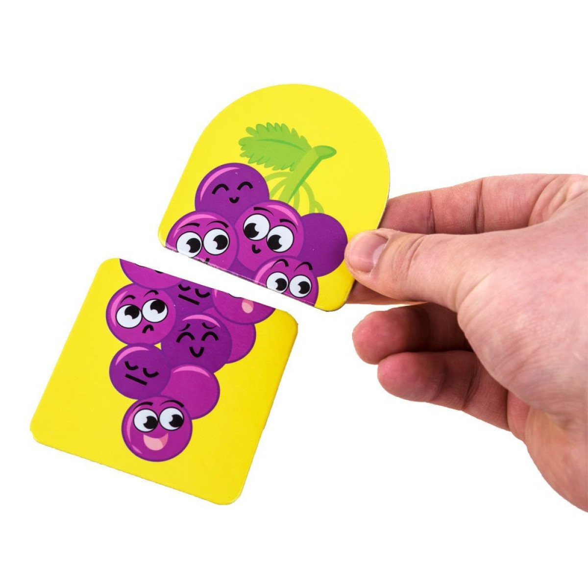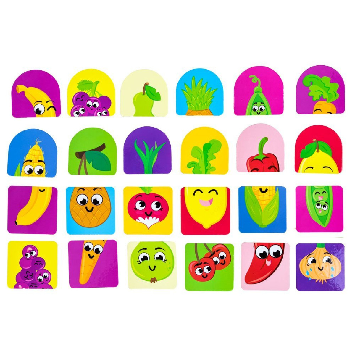 Ši puiki dėlionė skirta mažyliams ir jų tėveliams. Žaidimo esmė – sudėti paveikslėlius su besišypsančiais vaisiais ir daržovėmis taip, kad viršus atitiktų apačią.