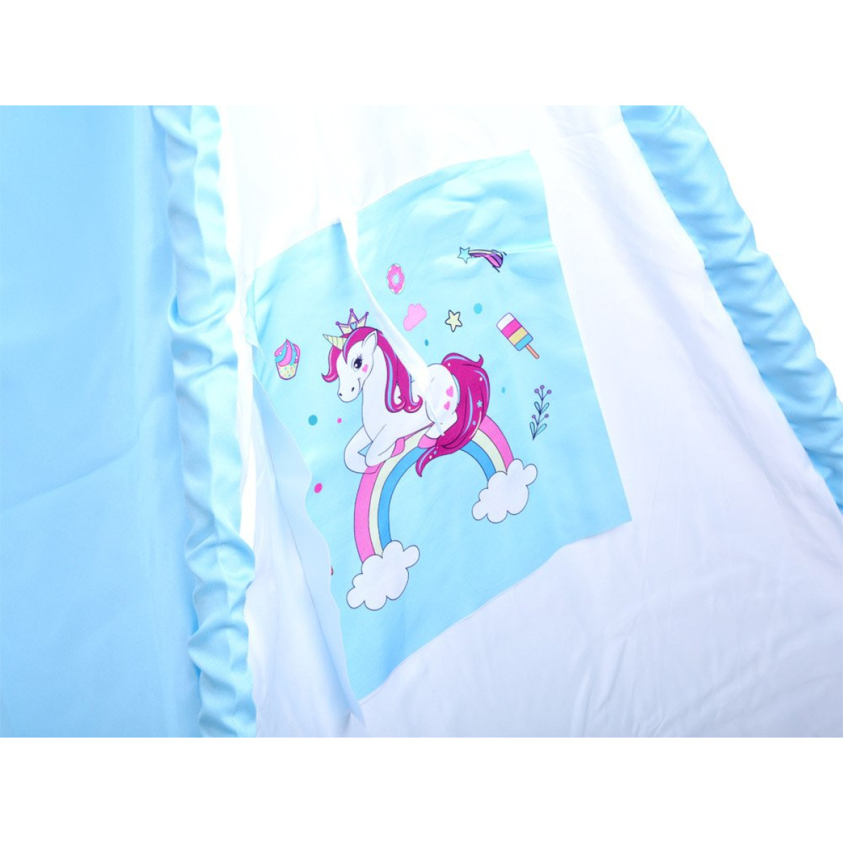 Palapinė yra gana erdvi, tad be problemų tilps visi vaiko turtai. Šią tipi palapinę galite dar papuošti pagal savo norus LED lemputėmis ar dekoracijomis, kad savininkas jaustųsi, jog tai yra jo vieta. Komplektas supakuotas į kartoninę dėžutę.