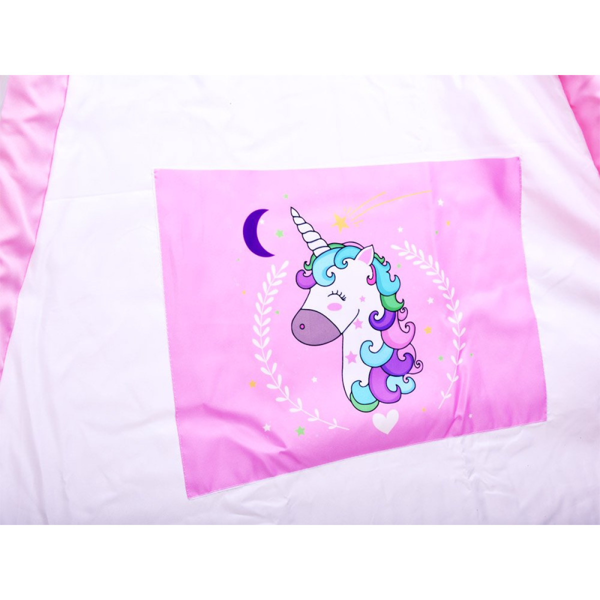 Palapinė Tipi stiliaus su vienaragiu tikrai patiks kiekvienai mergaitei. Vaikai mėgsta turėti paslapčių, o tokia palapinė bus puiki vieta slėptis ir saugoti lobius. Žaidimų palapinė, tinkama naudoti kambaryje ar sode, pagaminta iš lengvai valomos medžiagos, o vamzdeliai – iš plastiko. Wigwam palapinę galima pastatyti bet kurioje lygioje vietoje, ji puikiai tiks žaidimams su žaislais kambaryje ar sode. Palapinė turi raiščius, kuriais galima pririšti šonus, kad būtų patogu įeiti ir išeiti. Langas, per kurį galima žiūrėti, ar kas nors nepageidaujamas nesėlina prie palapinės, taip pat labai naudingas.