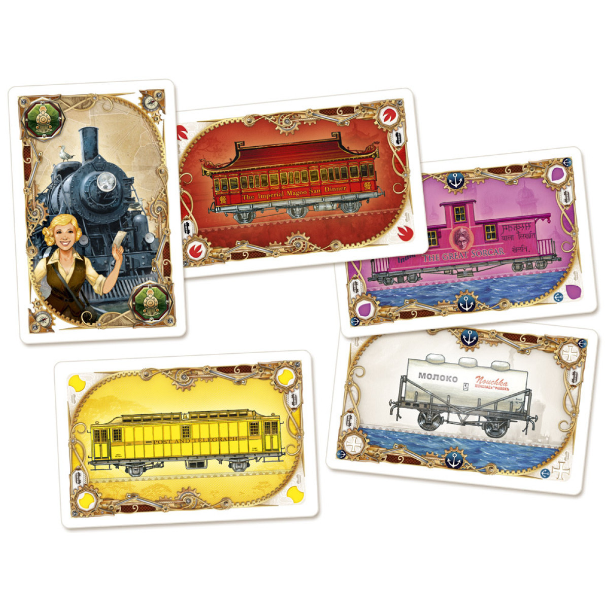 - Žaidėjai taip pat gauna vagonų ir laivų kortas, kurias naudos maršrutams statyti.