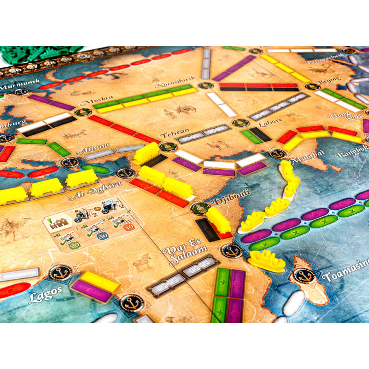 - Maršruto statymas: norėdamas sujungti miestus ant savo bilieto kortos, žaidėjas turi sužaisti atitinkamą kortų kiekį atitinkančią atkarpą ant žemėlapio. Atkarpos gali būti traukinio arba jūrinės, o kai kurios trasos jungia abu tipus.