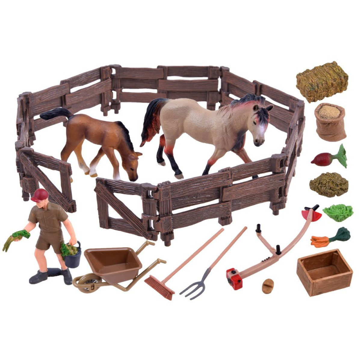 Kiekviena figūrėlė kruopščiai išlieta iš aukštos kokybės medžiagos, užtikrinančios jos ilgaamžiškumą ir atsparumą pažeidimams. Dėl tikslaus dažymo ir dėmesio detalėms, figūrėlės tiksliai atkartoja tikrų gyvūnų išvaizdą, dėl ko žaidimas tampa dar labiau realistiškas. Vaikai gali pilnai pasijausti kaip tikri augintojai, rūpindamiesi savo žirgais ir atlikdami kasdienius darbus fermoje.