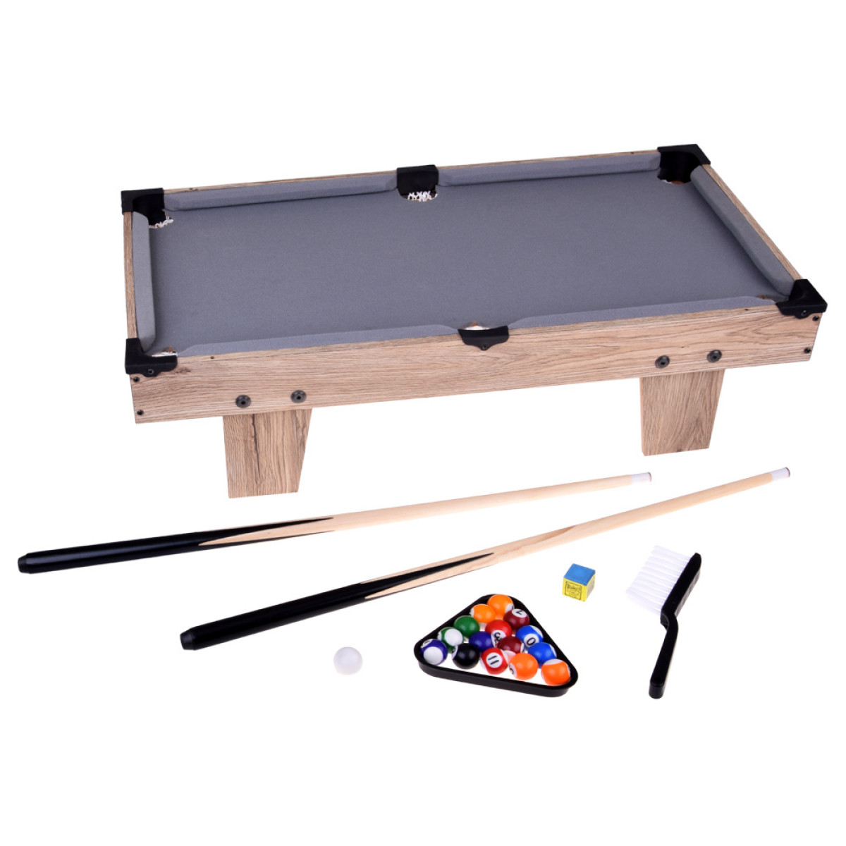 - aksesuarus: kreidos gabalėlį, trikampį kamuoliams, šepetėlį, tinklus