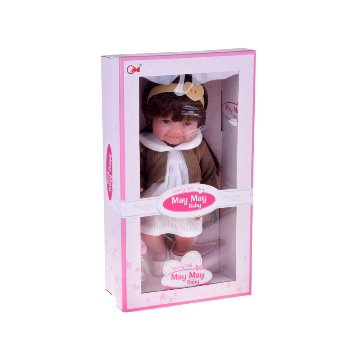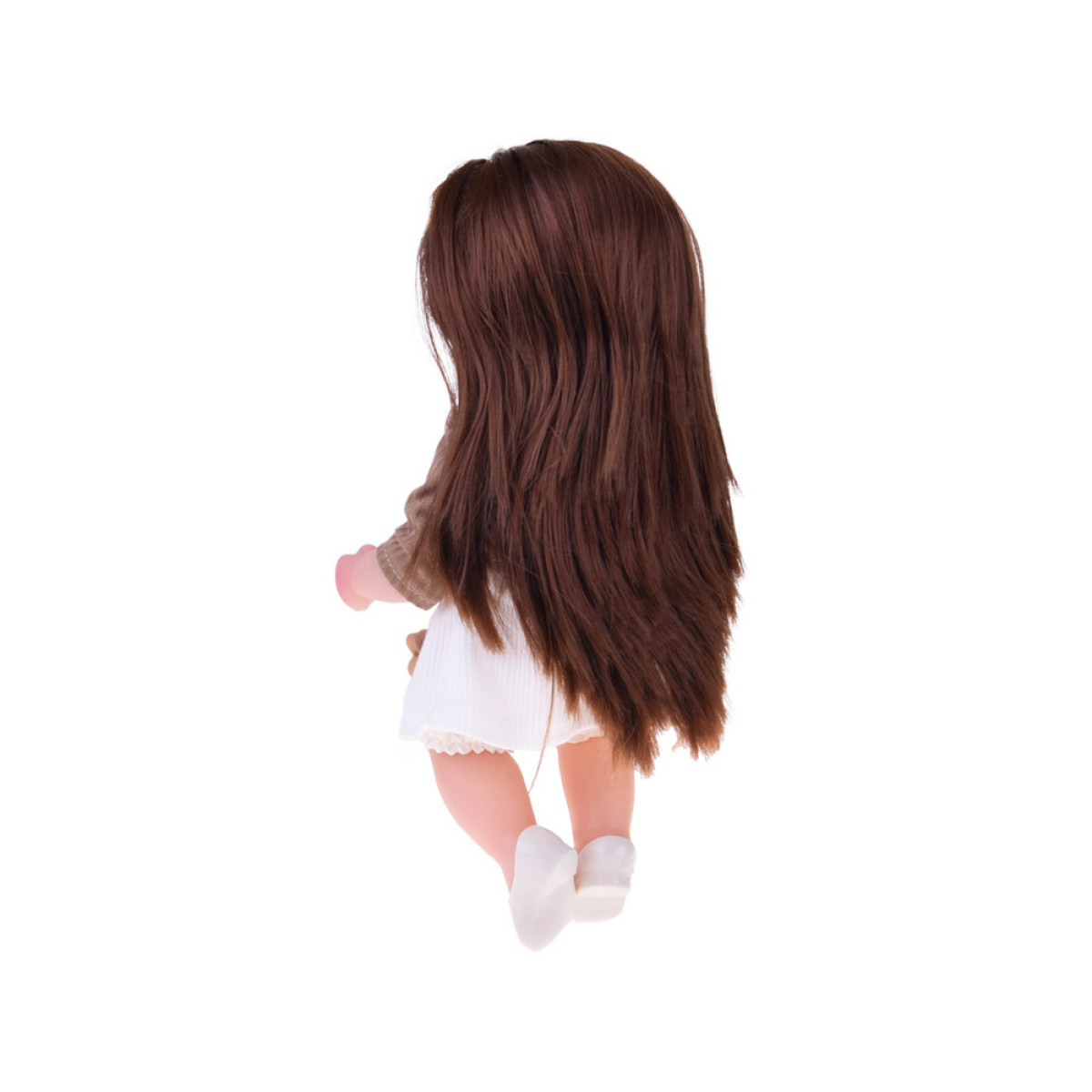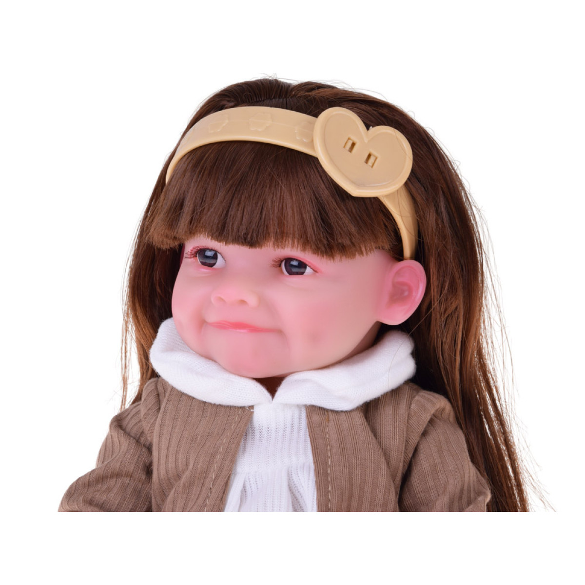 - Švelni šypsena: lėlė atrodo draugiška ir kviečia vaikus žaisti.
