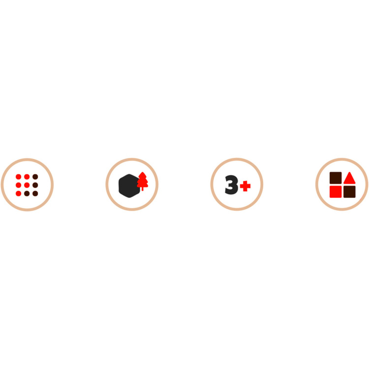 Saugus žaidimas kasdien - visi elementai pagaminti iš natūralaus medžio, nudažyti netoksiškais dažais, turi CE ir EN71 sertifikatus, todėl esate tikri dėl 100% saugumo.