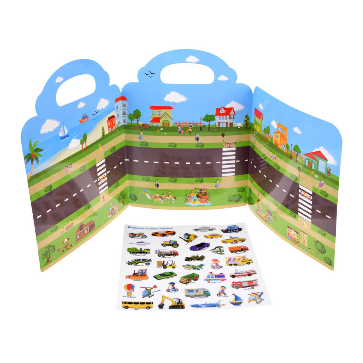 Albumas su lipdukais yra puiki pramoga kiekvienam mažyliui, kuris mėgsta kūrybingai leisti laiką. Smagiai kurkite savo pirmąjį albumą su saugia transporto priemonių kelio projektu ir lipdukų rinkiniu. Lipdukai su automobiliais gali būti klijuojami ant kartoninio lapo su slidžia paviršiaus struktūra. Tai įtraukianti pramoga vaikams. Lipdukai taip pat gali būti naudojami įvairiose kitose veiklose arba papuošti įvairius vaikų piešinius. Žaidžiant vaikai lavina tikslumą ir kruopštumą, treniruoja mažus pirštelius, mokosi kantrybės bei susikaupimo.