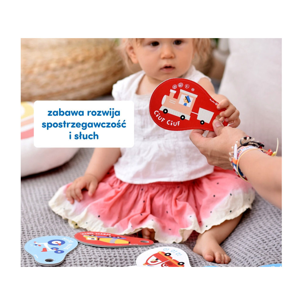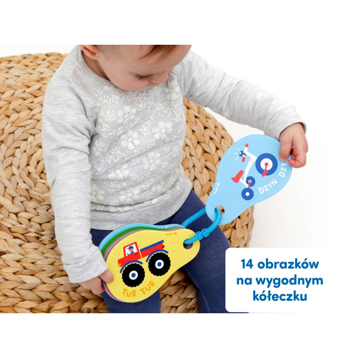 Ši iliustracinė knygelė ant žiedelio skatina bendrą pasaulio pažinimą ir įvairių lavinamųjų žaidimų užsiėmimus. Spalvingos transporto priemonių iliustracijos, pritaikytos vaikų amžiui, skatina vaikus parodyti pirštuku, mokytis naujų žodžių ir bandyti kalbėti. Garso pamėgdžiojimas yra pirmasis žingsnis į kalbėjimą! Žiūrėkite knygelę ir žaiskite kartu!