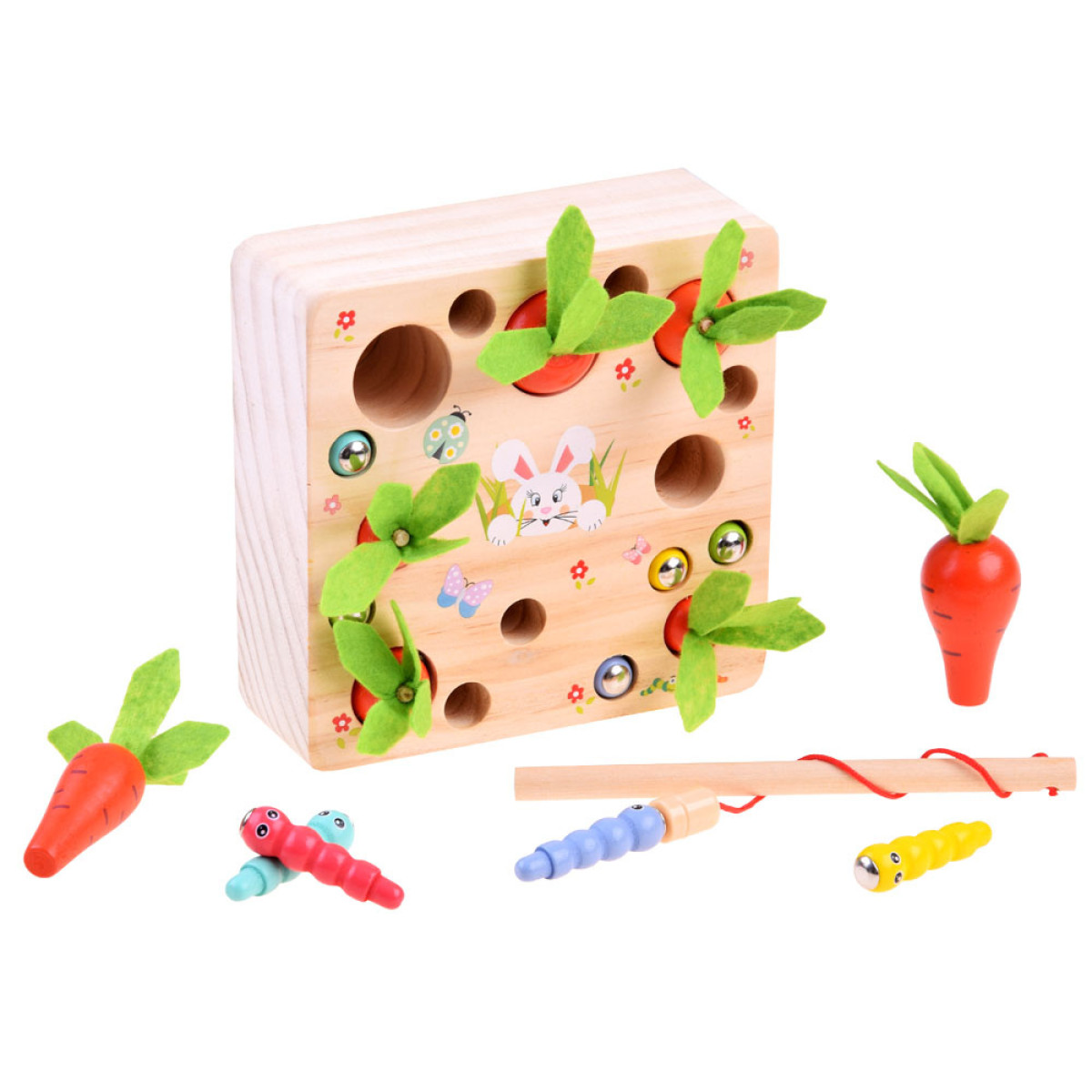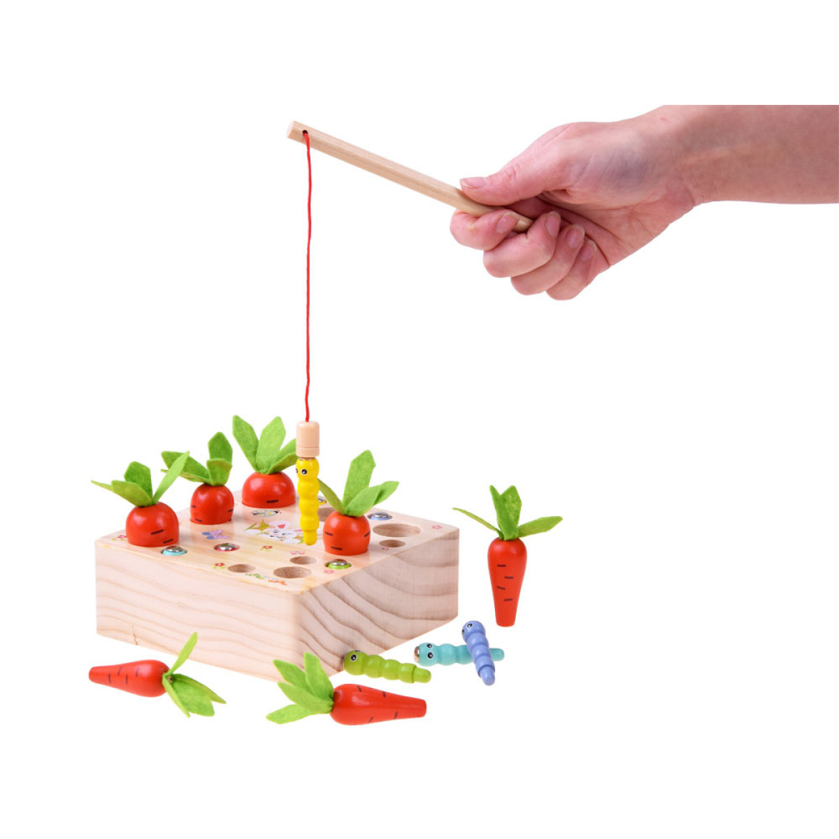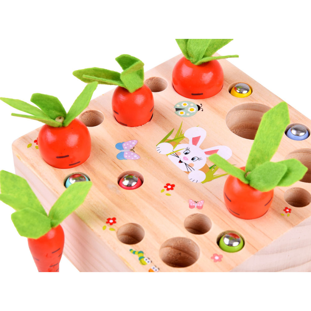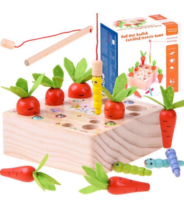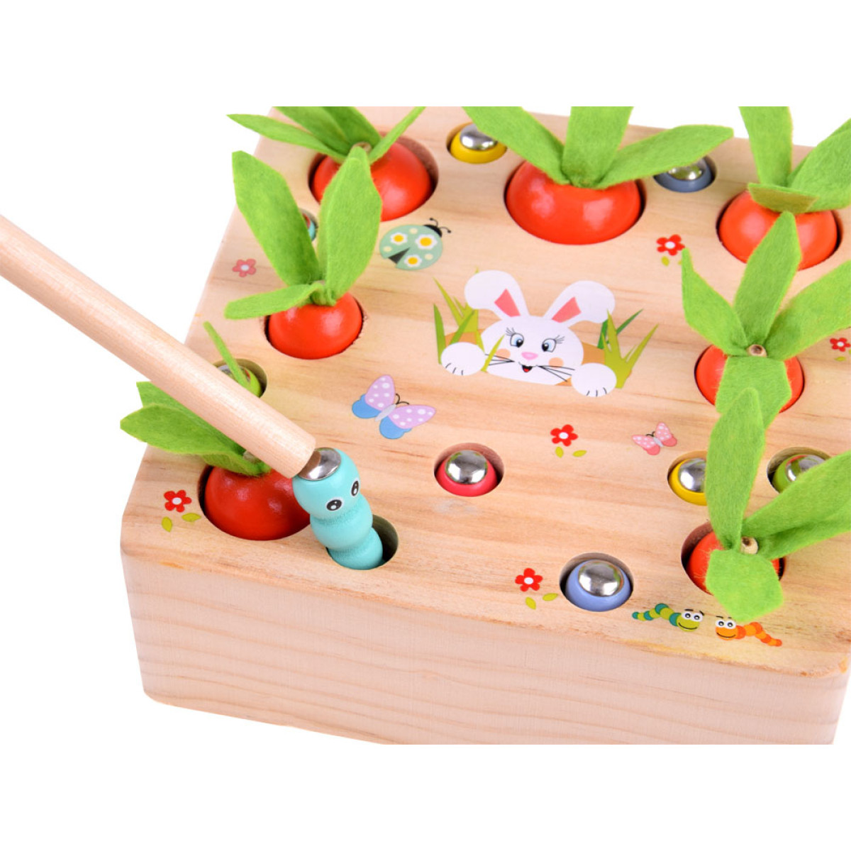 Norint apsaugoti augančias morkas nuo vabaliukų, reikia greitai juos surinkti! Kiekviena morka turi skirtingą dydį, todėl jas reikia tinkamai sudėti, kad nei viena neišsikištų iš savo vietos. Naudodamiesi meškere, vaikai gali įdėti arba ištraukti spalvotus vabaliukus iš skylių, kiekvienas vabaliukas turi galvutėje magnetą. Vabaliukus galima ištraukti atsitiktinai arba pagal spalvas.