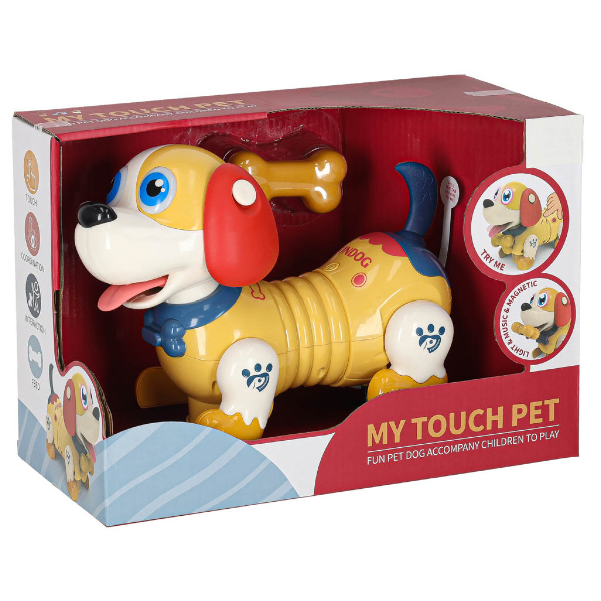 Interaktyvus šuniukas su kaulu reaguoja į prisilietimus