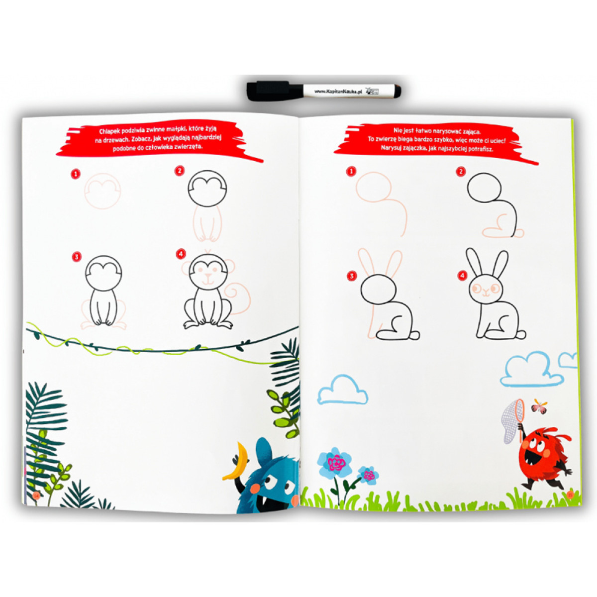 - instrukcijas, kaip žingsnis po žingsnio piešti gyvūnus (pvz., beždžionę, kapibarą, kiaulę ir daugybę kitų),