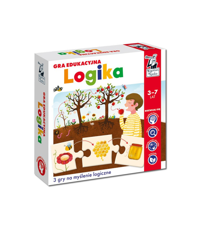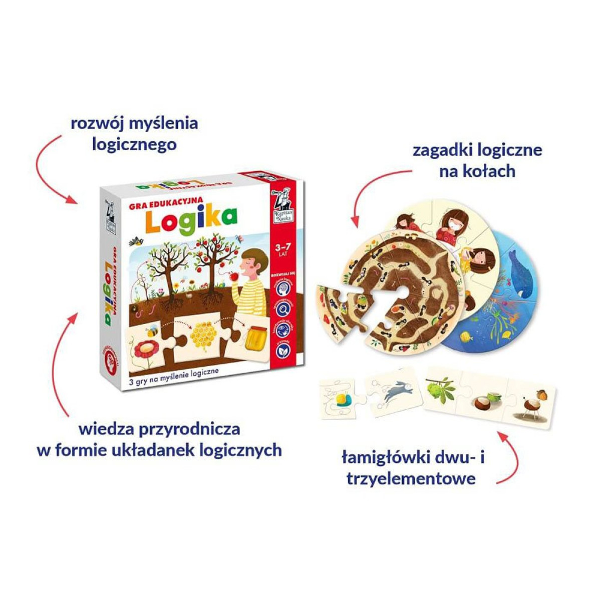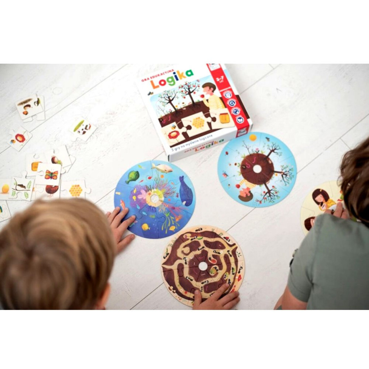 Edukacinis žaidimas „Logika“ (3-7 metų) yra rinkinys itin spalvingų dėlionių, skirtų stebėti ir pažinti gamtą bei lavinti loginį mąstymą. Įvairios žaidimo formos padeda ikimokyklinukams sužinoti, kaip atrodo gamta skirtingais metų laikais, kuo skiriasi jūrų gyventojai, kaip gyvena skruzdėlės ir iš kur atsiranda, pavyzdžiui, medus. Kiekviena iš gamtos temų moko praktinių įgūdžių: nustatyti laiko seką ir priežasties-pasekmės ryšius, lyginti dydžius, atpažinti priešingybes bei skaičiuoti nuo 1 iki 10.