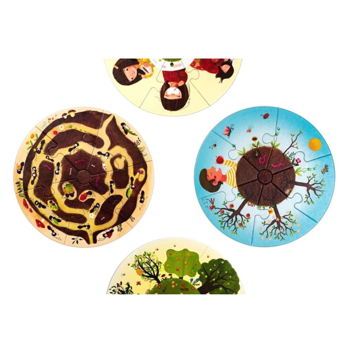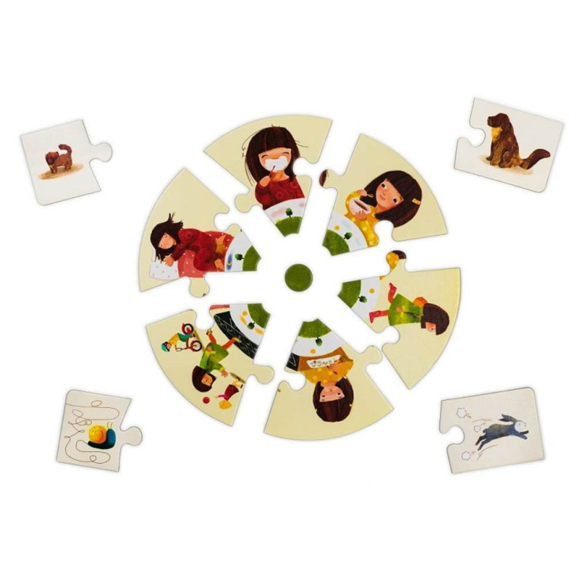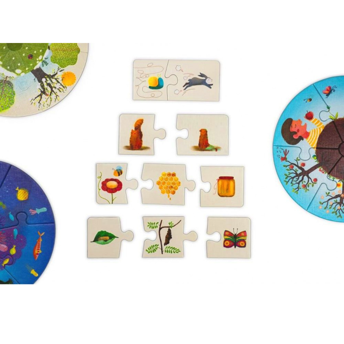 Kaip atrodo dekoratyviniai ir vaismedžiai įvairiais metų laikais? Kas miega kokone? Kuris gyvūnas yra lėtas, o kuris greitas? Edukacinis žaidimas „Logika“ (3-7 metų) yra puikus pasirinkimas smalsiems ikimokyklinukams, kurie mėgsta atrasti gamtos paslaptis, sudėlioti dėliones ir spręsti galvosūkius. Rinkinį sudaro 8 šešių dalių apskritimo formos dėlionės, supažindinančios su dienos ir metų laikais bei įvairiais gyvūnų rūšimis, taip pat 8 dviejų ir trijų dalių dėlionės, vaizduojančios priešingybes ir priežasties-pasekmės ryšius.