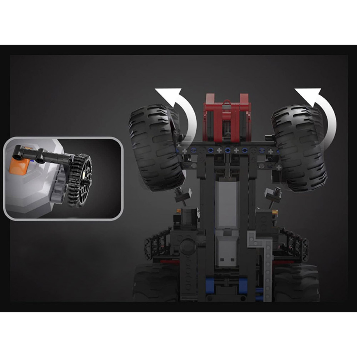 • Nuotolinis valdymas: Transporto priemonė turi vieną ličio akumuliatorių, du M variklius, L variklį ir servovariklį, leidžiantį tiksliai valdyti judėjimą į priekį ir atgal. Priekinių ratų darbo simuliacija užtikrina tikslią vairavimo patirtį. Nuotoliniu būdu galima taip pat valdyti galinio kablio pakėlimą ir 180° kampu besisukantį tvirtinimą, kas tiksliai imituoja tikrą mašinos darbą.