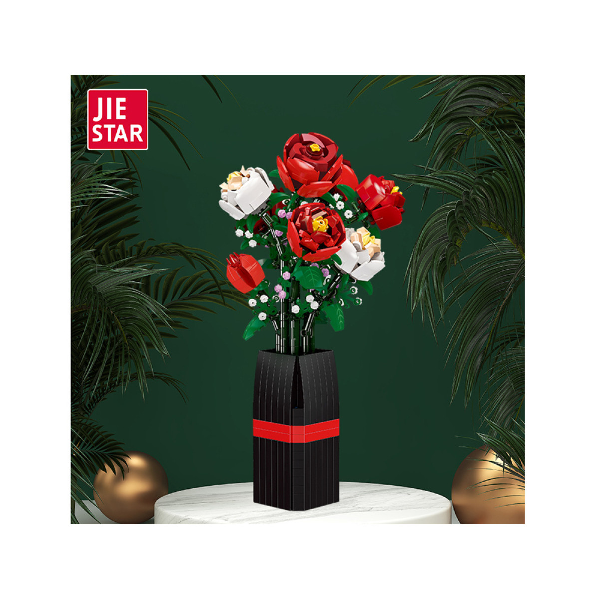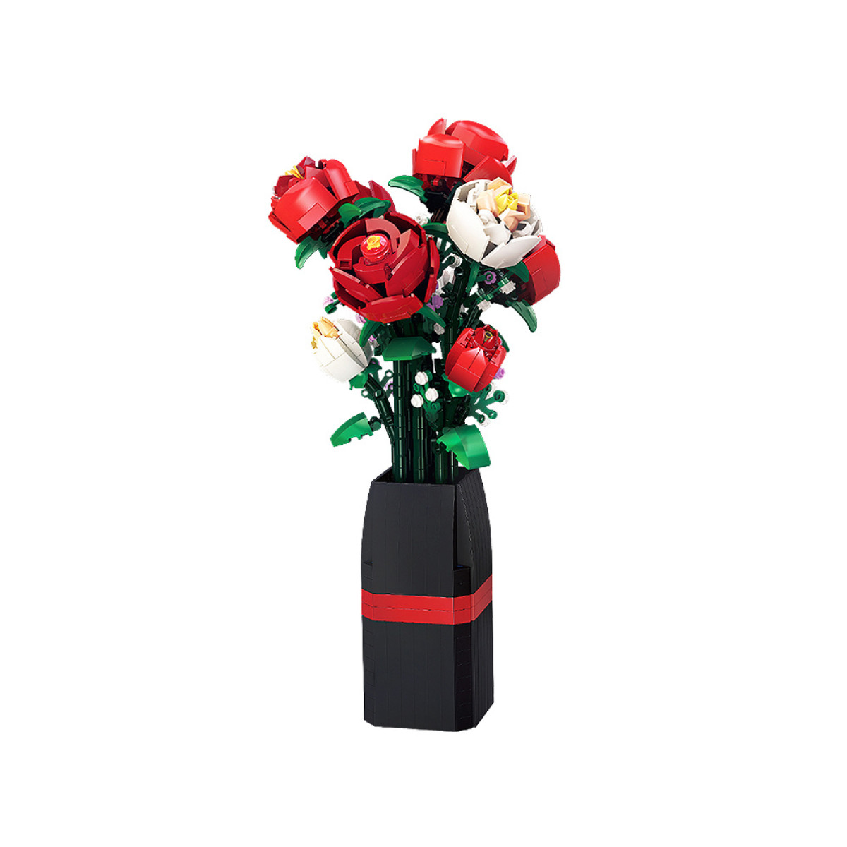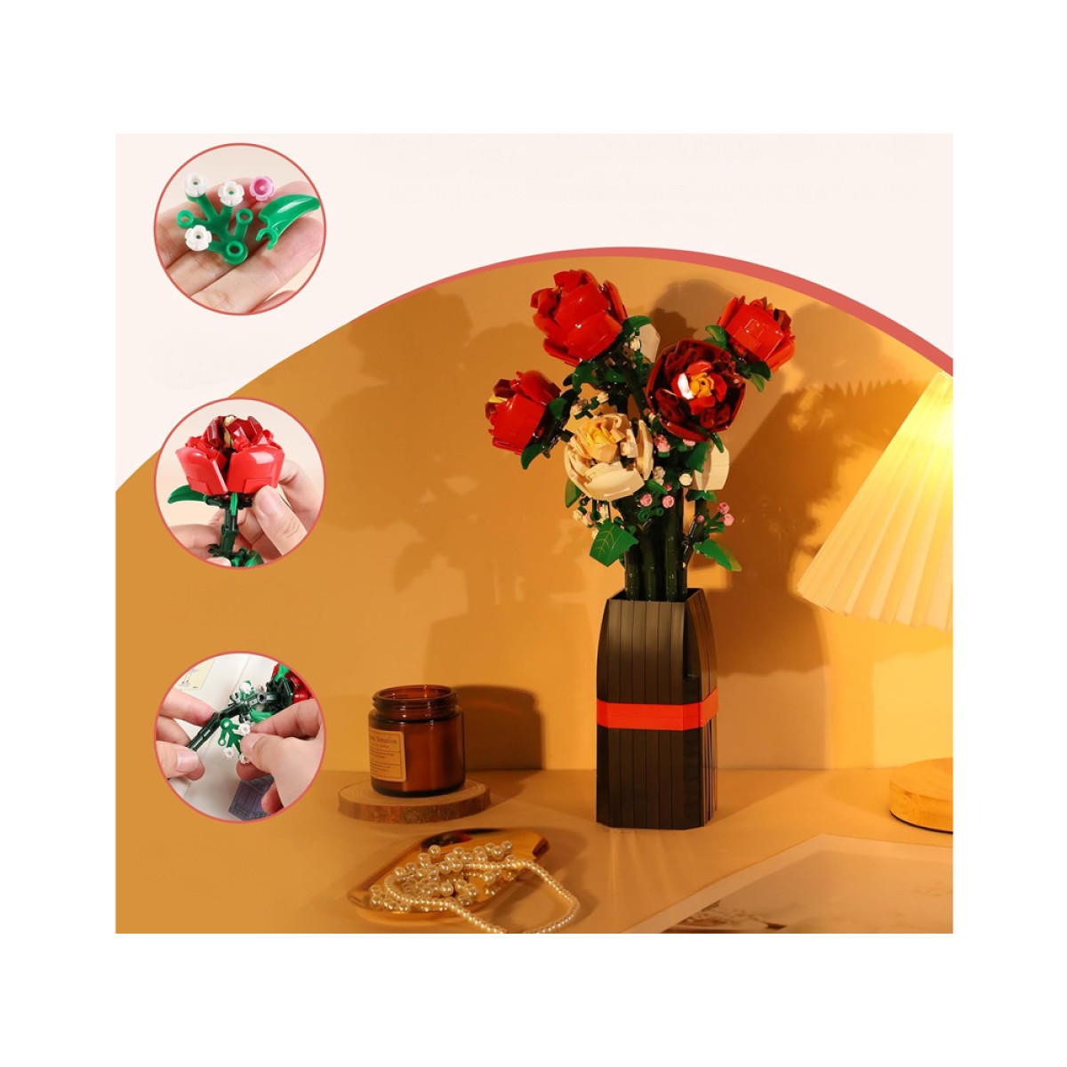 Konstrukciniai blokai Gėlių puokštė su vazone - Rožių puokštė (818 elementų)