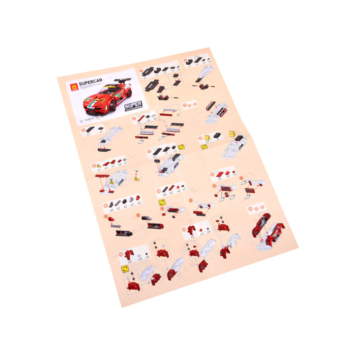 Raudonas sportinis automobilis iš 164 dalių