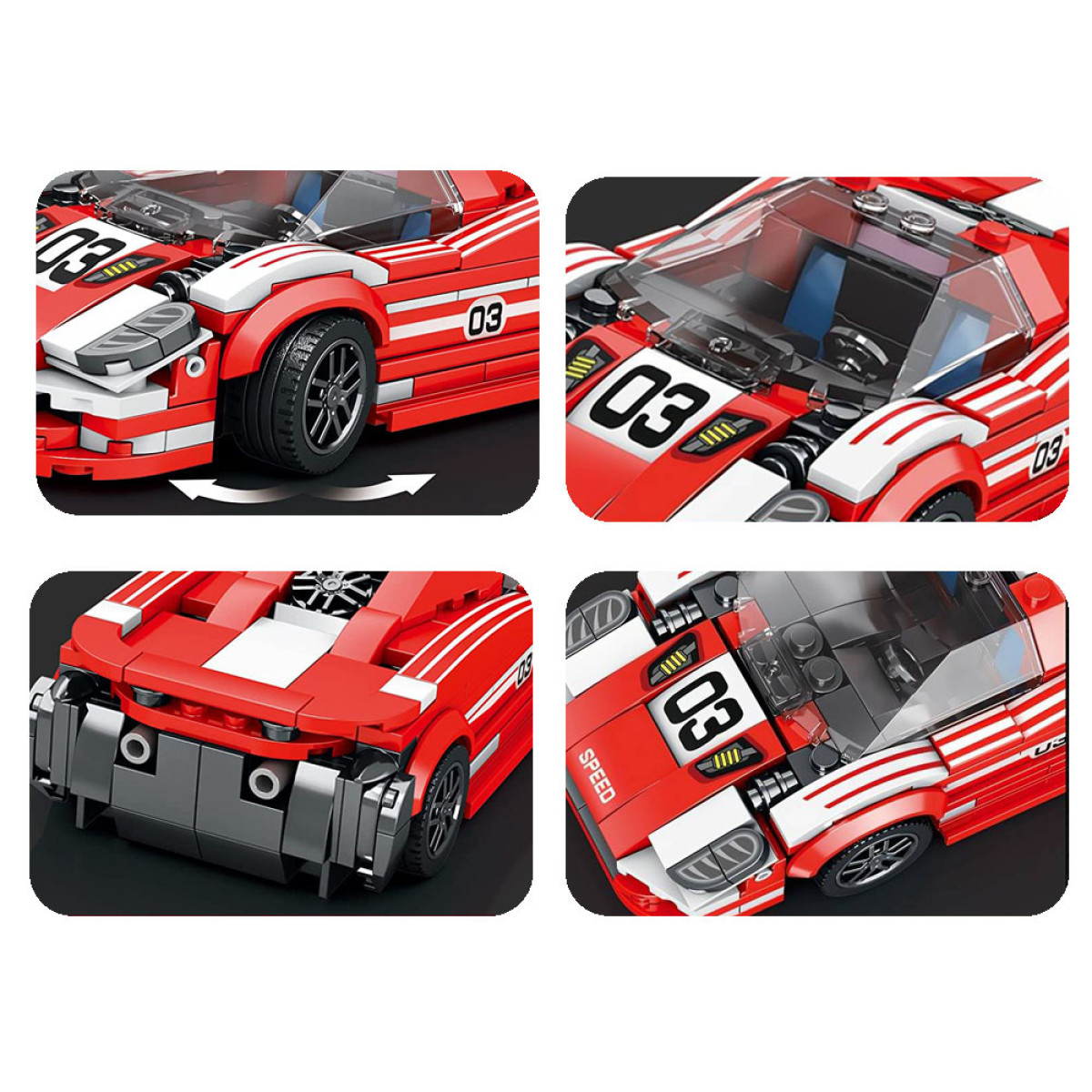 Rinkinys pagamintas iš plastiko, kurio dalys lengvai ir greitai jungiasi tarpusavyje, sukuriant išskirtinį sportinį automobilį.