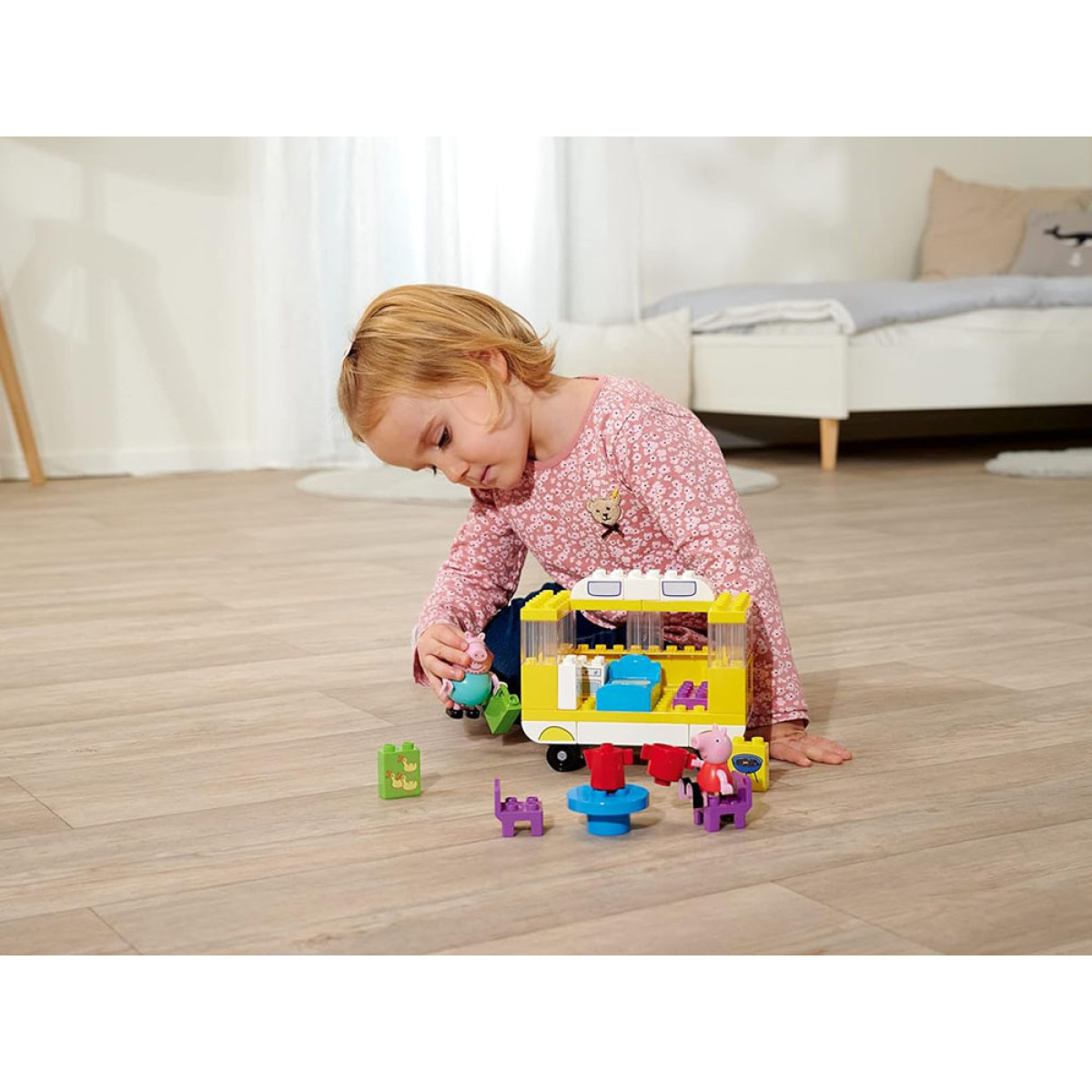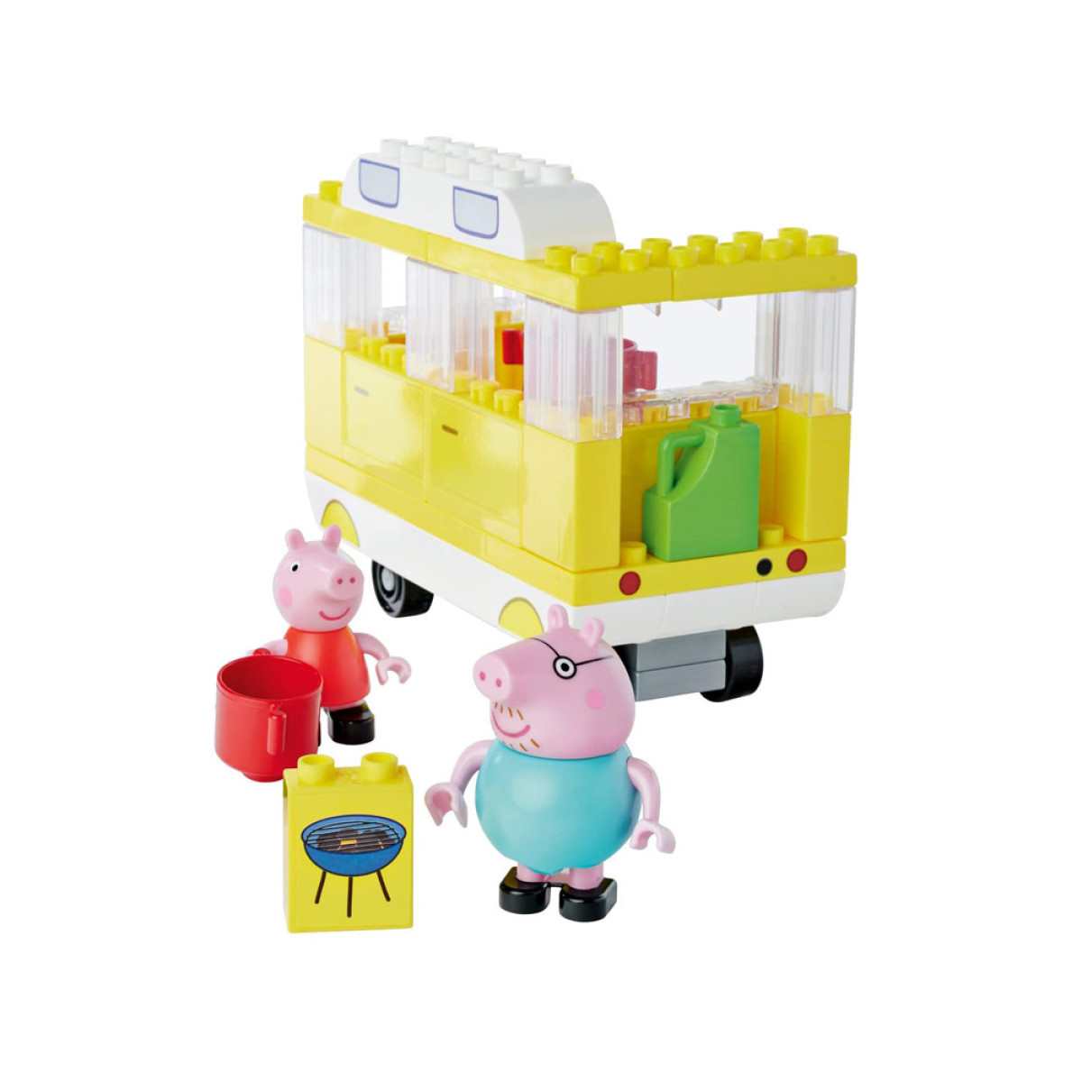 Konstrukcinių klotų rinkinys Kemperis Peppa yra sudarytas iš 52 elementų ir suteiks džiaugsmo tiek vienam, tiek visiems šio animacinio personažo gerbėjams. Rinkinys turi dvi figūrėles: mažąją kiaulytę Peppa ir jos tėtį. Klotais vaikas galės pastatyti kemperį savo mėgstamiems animaciniams gyvūnams ir leistis į savaitgalio kelionę, kur kartu su Peppa ir jos tėčiu galės kepti kepsnius. Kemperis yra įrengtas lova, virykle, šaldytuvu bei lauko žaidimų aksesuarais. Priešais kemperį yra jaukus sėdėjimo komplektas, kuriame galima paruošti arbatą ir kepti ant grilio. Vaikai mėgsta kurti savo pasakojimus ir istorijas, šis klotų rinkinys tikrai padės tai įgyvendinti. Klotai yra suderinami su kitais Hasbro Big klotais.