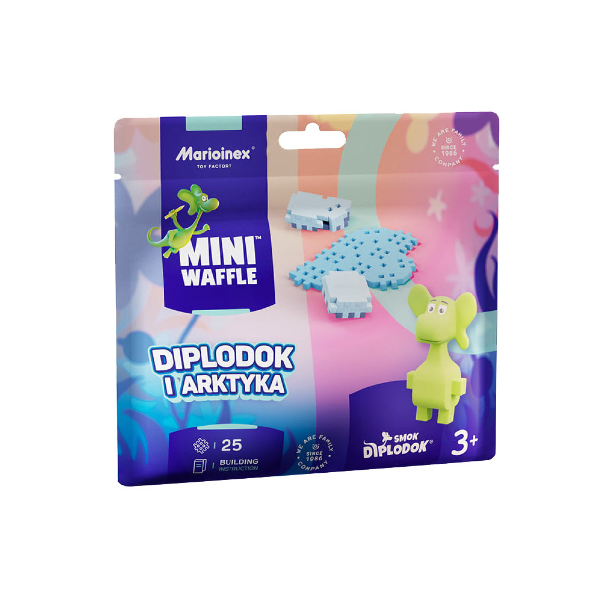 Marioinex Smok Diplodok ir Arktyka Mini vafliai 25 detalių + figūrėlė