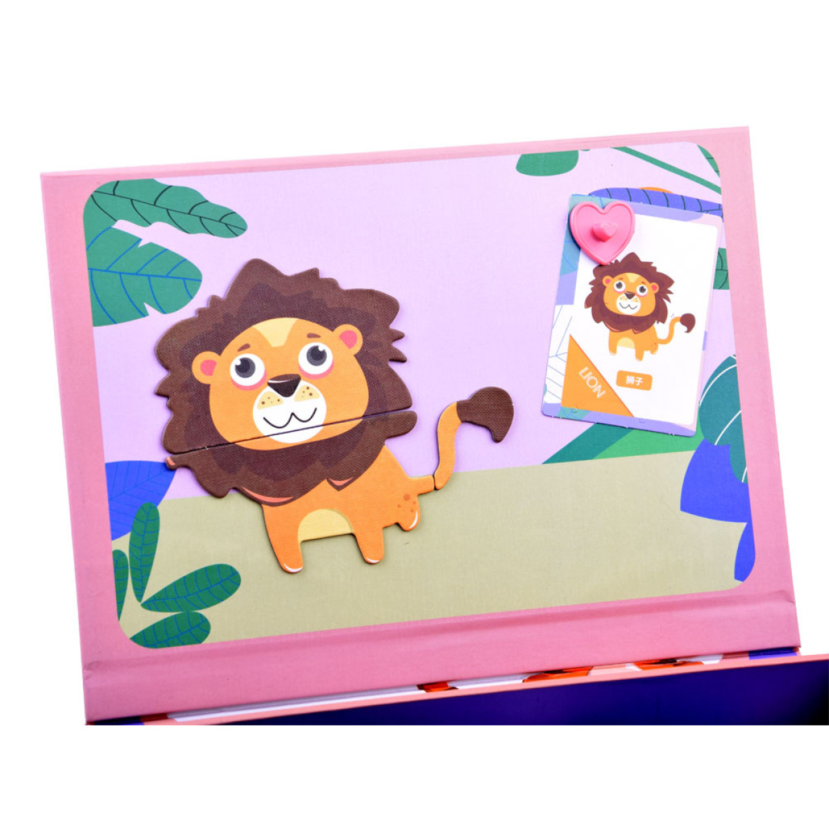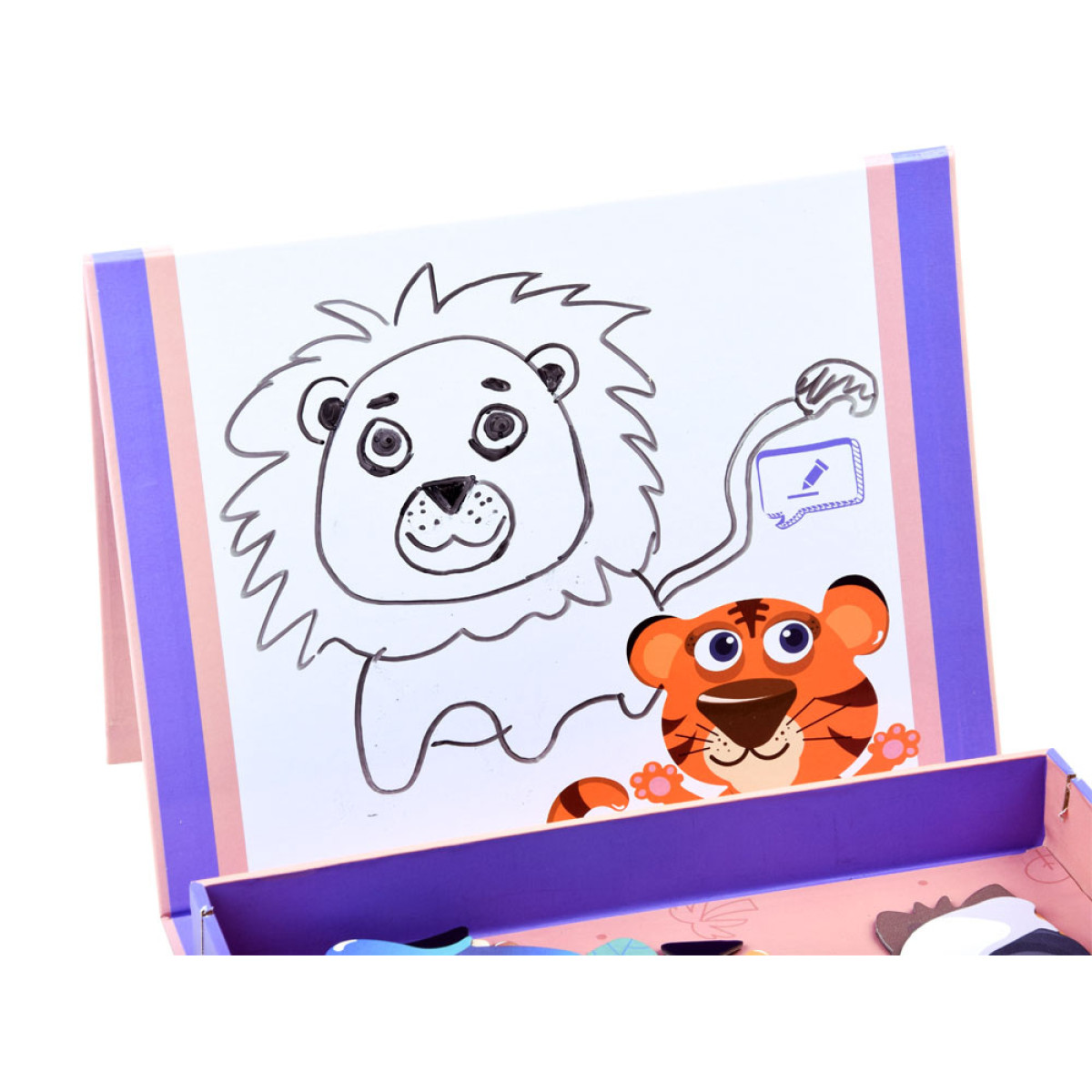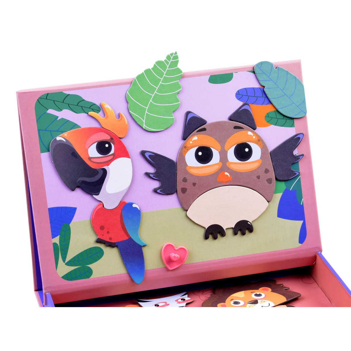 Magnetinė dėlionė gyvūnai yra puiki pramoga mergaitėms ir berniukams. Rinkinys apima spalvotus magnetus, kuriuos galima dėlioti ant magnetinės lentos, todėl žaidimas galimas net kelionės metu. Dėlionė suteikia daug galimybių – be magnetinių dėlionių galima naudoti išlankstomą sausą trynimo lentą ir piešti gražius paveikslėlius pagal savo idėjas arba atkurti gyvūnus iš pridedamų 10 kortų.