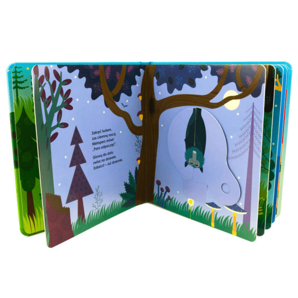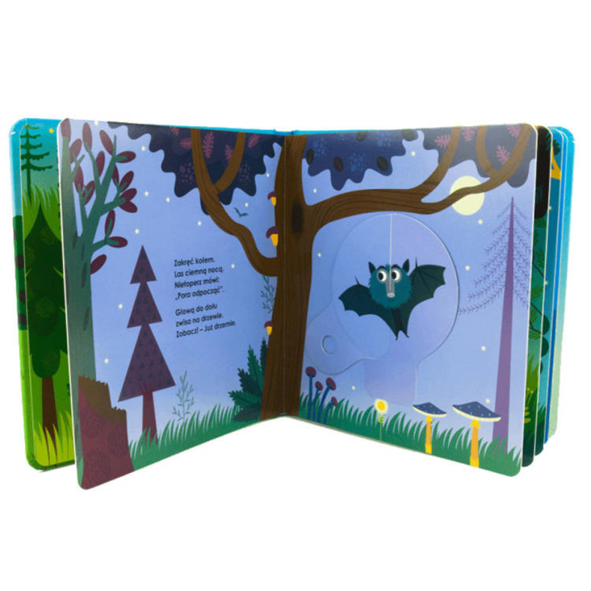 Knyga iš serijos Magiškas ratas yra puikus pasirinkimas prieš miegą. Pasukite ratą ir pamatysite, kaip miegoti ruošiasi miško gyventojai: ežys, šikšnosparnis, pelėda ir burundukas. Ratas visiškai pakeičia puslapio vaizdą ir primena, kad jau laikas miegoti.