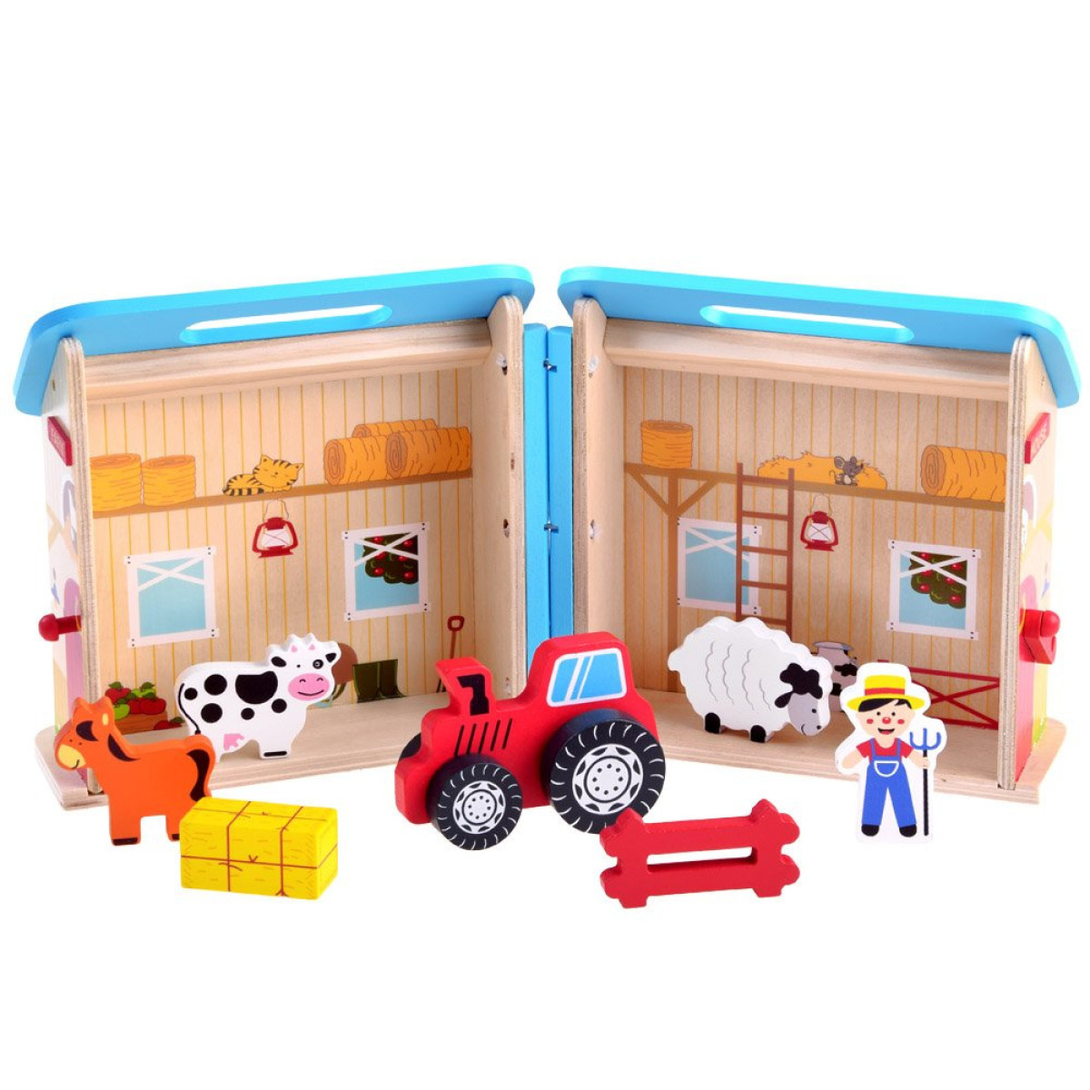 Medinis sulankstomas namelis su ferma ir gyvūnais