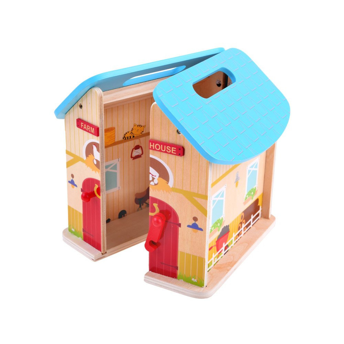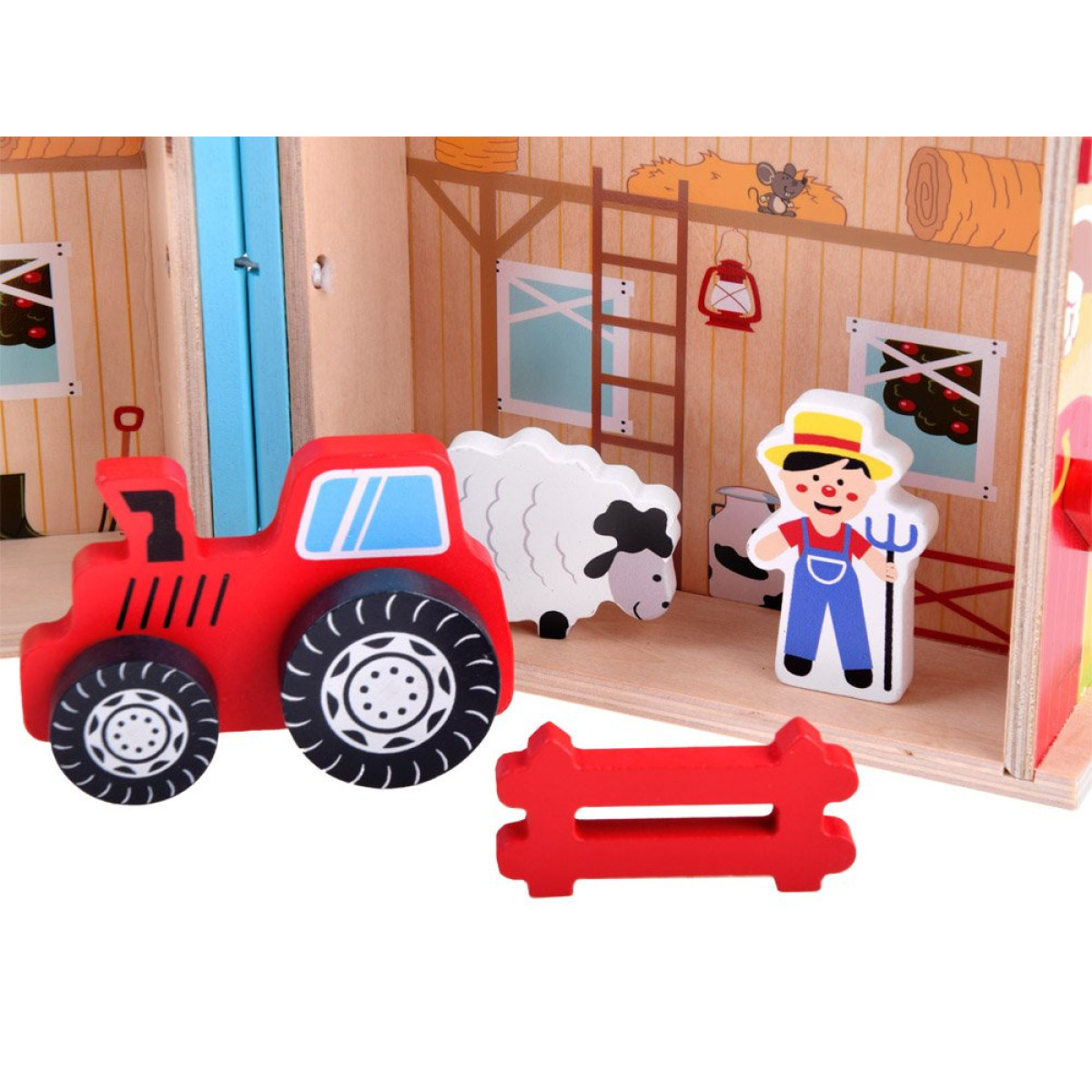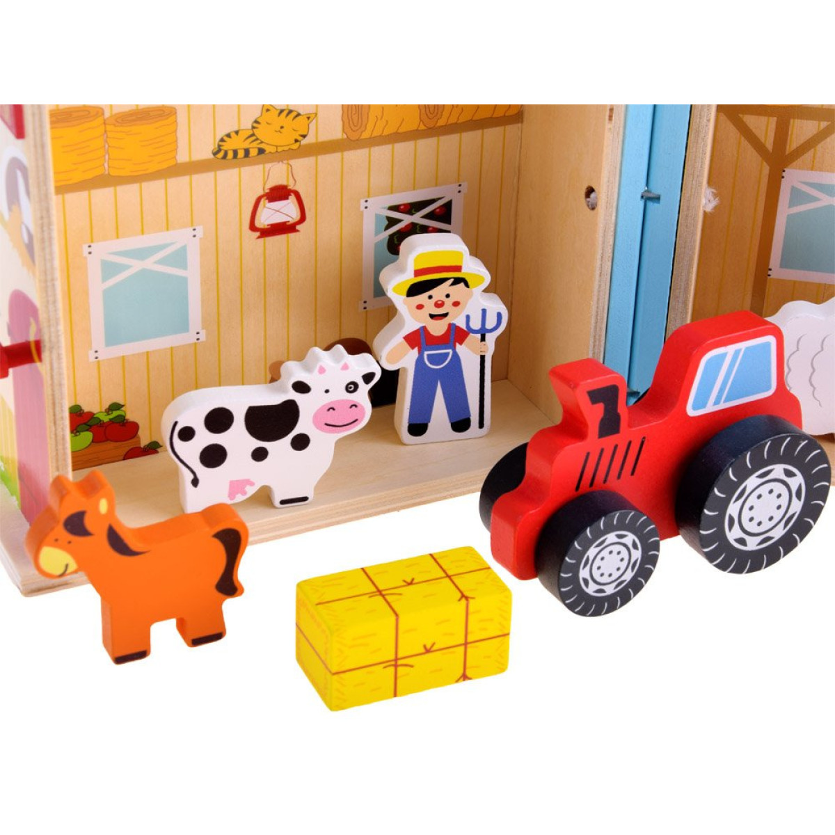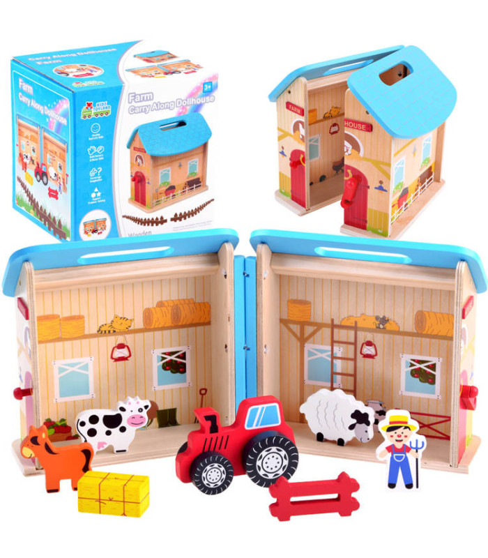 Šis medinis namelis su ferma tikrai sužavės kiekvieną mažą ūkininką. Ferma yra pagaminta iš medžio, todėl ji yra stabili ir spalvinga, užtikrinanti vaikams daug pramogų ilgam laikui. Fermą apgyvendina karvė, avinas, arklys ir šeimininkas. Šis medinis namelis gali tapti puikiu nuotykių pradžia vaikams. Vaikų fantazija ir kūrybingumas neturi ribų.
